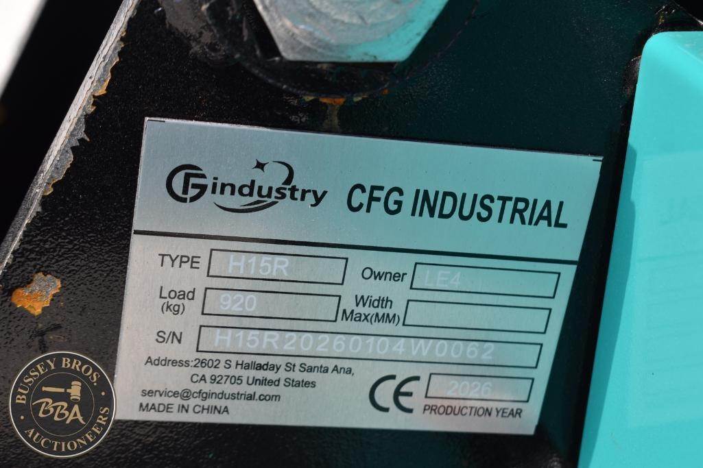 CFG Industrial Mini Excavator Manual thumb, grading blade, digging bucket, rubber tracks, gas engine, toolbox, H15R, SN#H15R20260104W0062, NEW/UNUSED