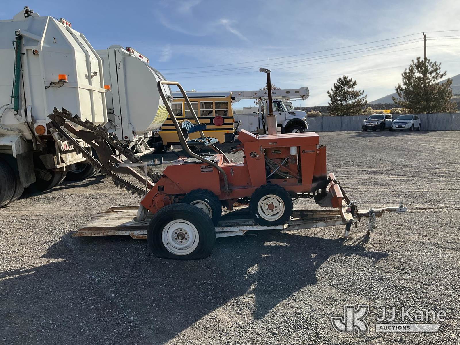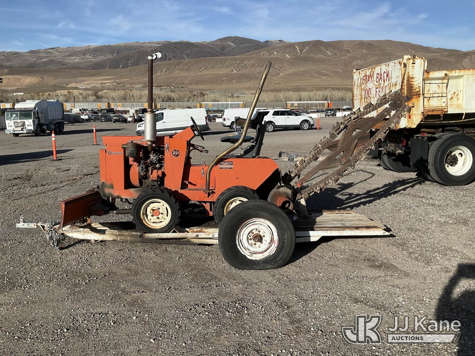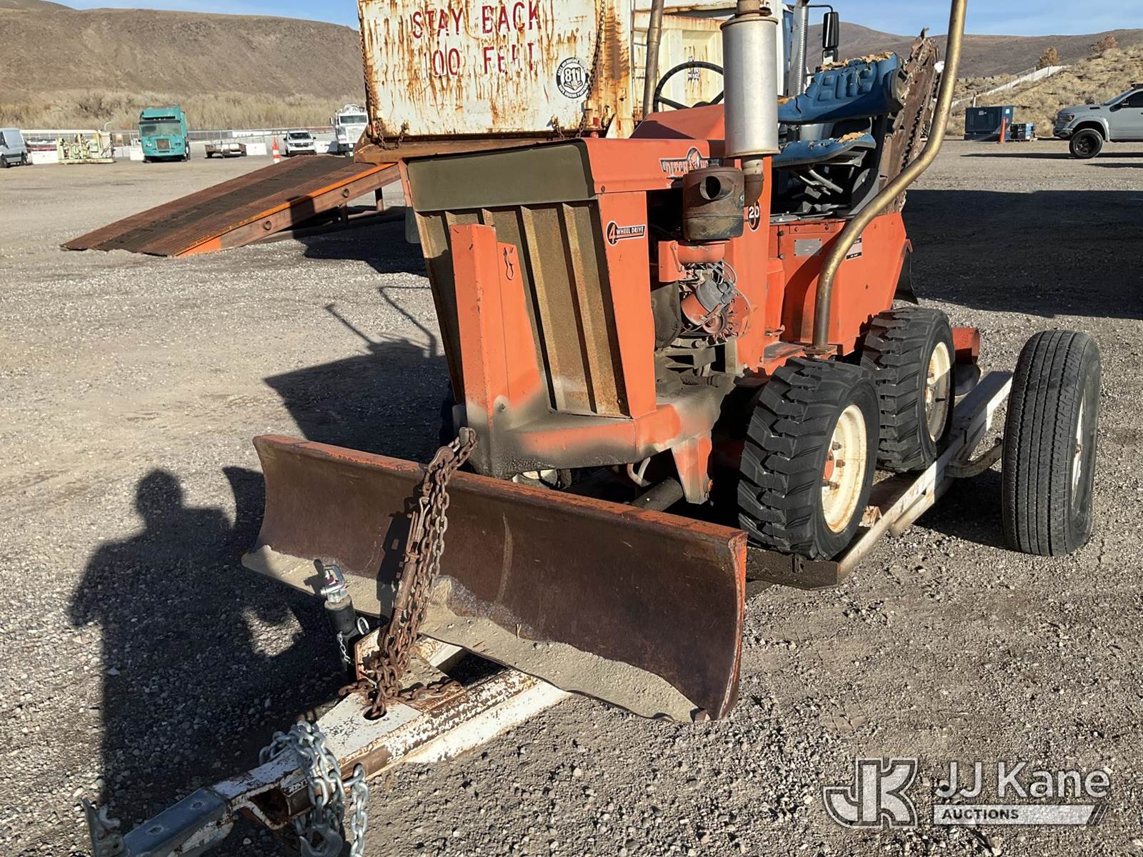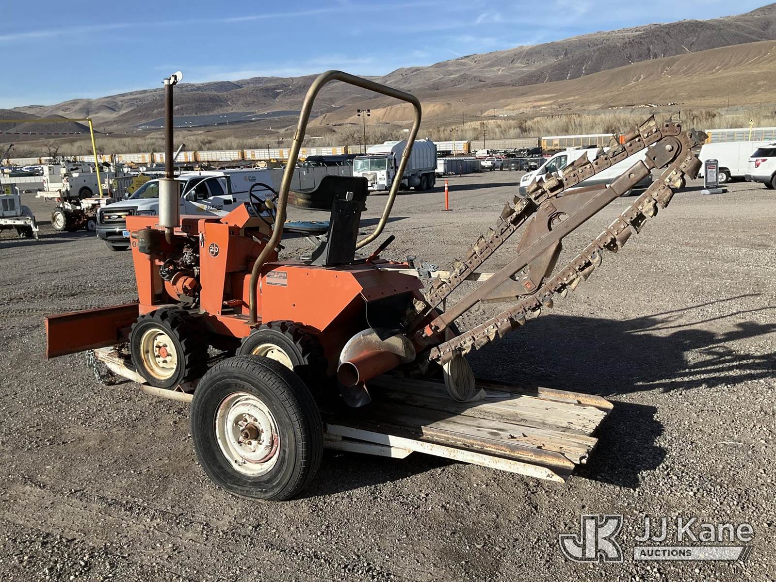 Charles Machine Works J20D Rubber Tired Trencher, s/n 238021, Wisconsin diesel, with backfill blade, ROPS posts, support trailer, (Not Running, Condition Unknown) NOTE: This unit is being sold AS IS/WHERE IS via Timed Auction and is located in Sparks, NV. Inspection & preview days for this unit are the 2 business days prior to the first day of items closing for this auction, item is located at 601 Britain Dr Sparks, NV 89437 and hours of operations are 8a-4p. Titles executed exactly as bidder registered. Ensure your name and/or business name and address in JJ Kane and/or ProxiBid is correct before bidding. For pre-sale questions, please contact Office Staff @ (801) 519-0123 and provide sale date and lot number. Sparks Dealer License Number DLR000052908 / OHV000052909. (Buyer is responsible for removal. Assistance by consignor or JJ Kane Auctioneers is not assured.)