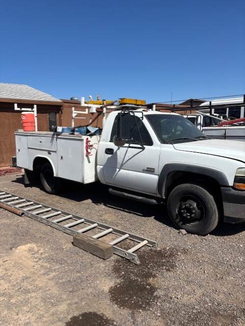 2002 Chevy CK350 service truck, 6.5 V* Diesel Turbo engine, automatic transmission. Has equipment fuel tank in bed. Truck fires up and runs. Will need some basic maintenance and small repairs. Truck is priced to reflect that.