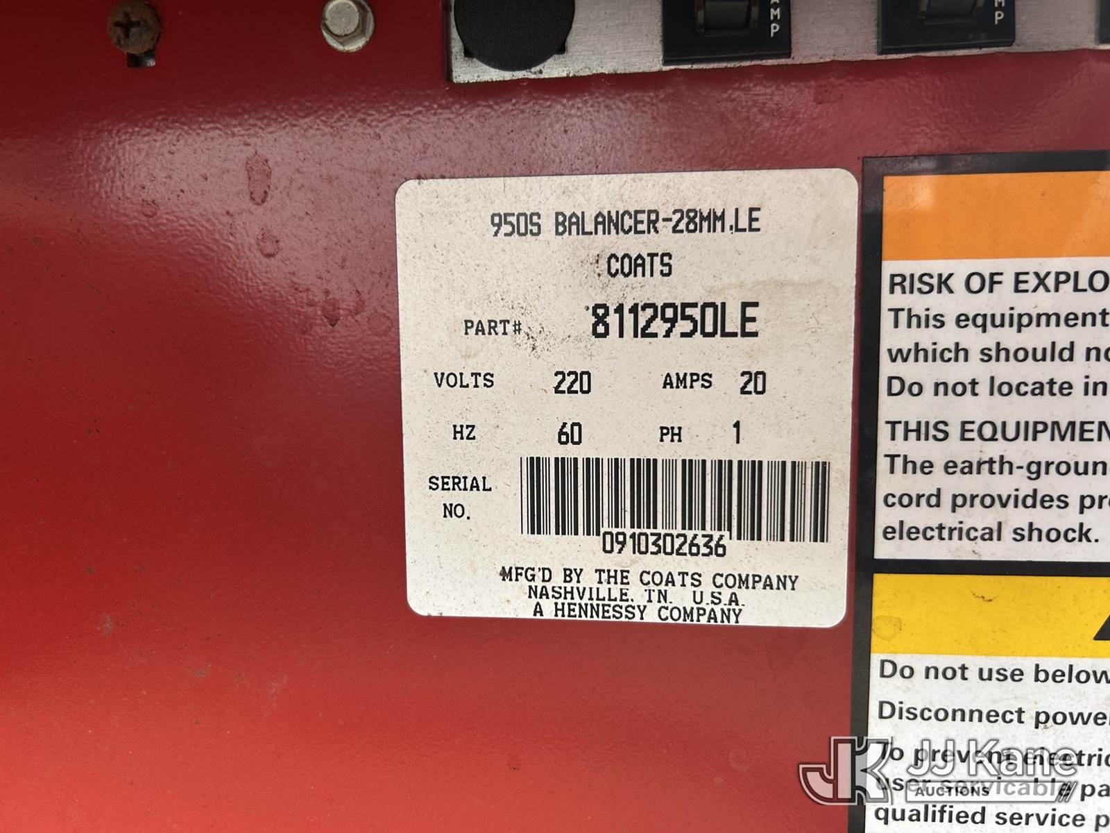 Coats Direct Drive 950 Tire Balancer, electric (Used) (BUYER RESPONSIBLE FOR LOAD OUT – NO FORKLIFT ONSITE FOR ASSISTANCE) NOTE: This unit is being sold AS IS/WHERE IS via Timed Auction and is located in Shakopee, MN. Inspection & preview days for this unit are the 2 business days prior to the first day of items closing for this auction, item is located at 1109 Stagecoach Rd Shakopee, MN 55379 and hours of operations are 8a-3p. For pre-sale questions, please contact Office Staff @ (651) 421-3305. (Buyer is responsible for removal. Assistance by consignor or JJ Kane Auctions is not assured.)