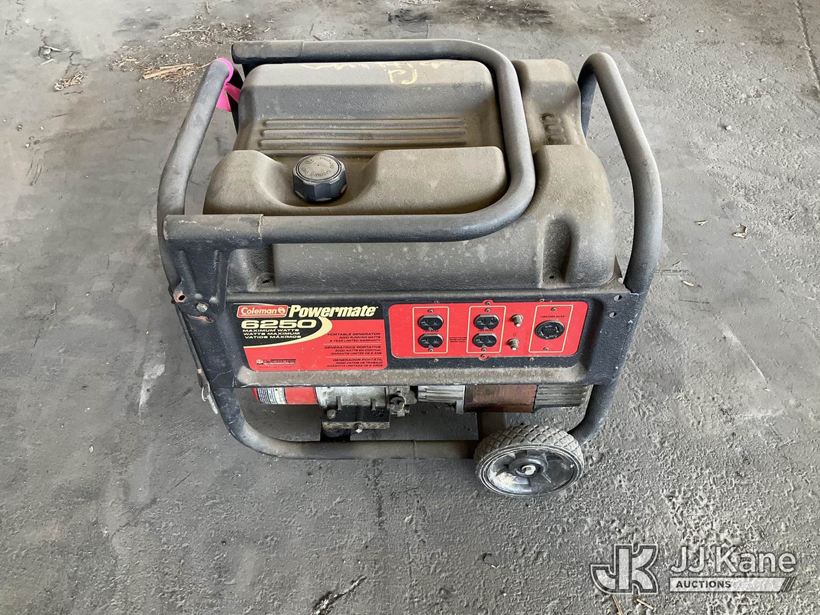 Coleman Powermate 6250 Generator (Used) NOTE: This unit is being sold AS IS/WHERE IS via Timed Auction and is located in Jurupa Valley, CA. Inspection & preview days for this unit are the 2 business days prior to the first day of items closing for this auction, item is located at 4510 Muth Way Jurupa Valley, CA 92509 and hours of operations are 8a-4p. For pre-sale questions, please contact please contact Office Staff @ (310) 353-7140. Dealer License Number 45696. (Buyer is responsible for removal. Assistance by consignor or JJ Kane Auctioneers is not assured.)