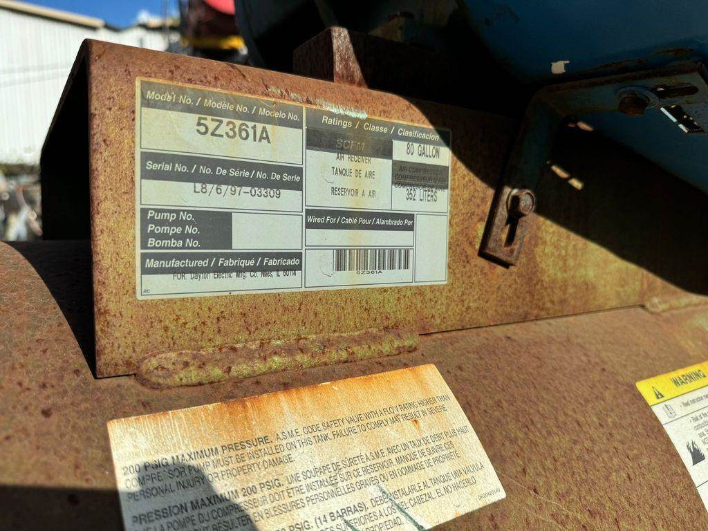 Compressor Used Model 5Z361A Serial No. L8/6/97-03309 80 Gallon