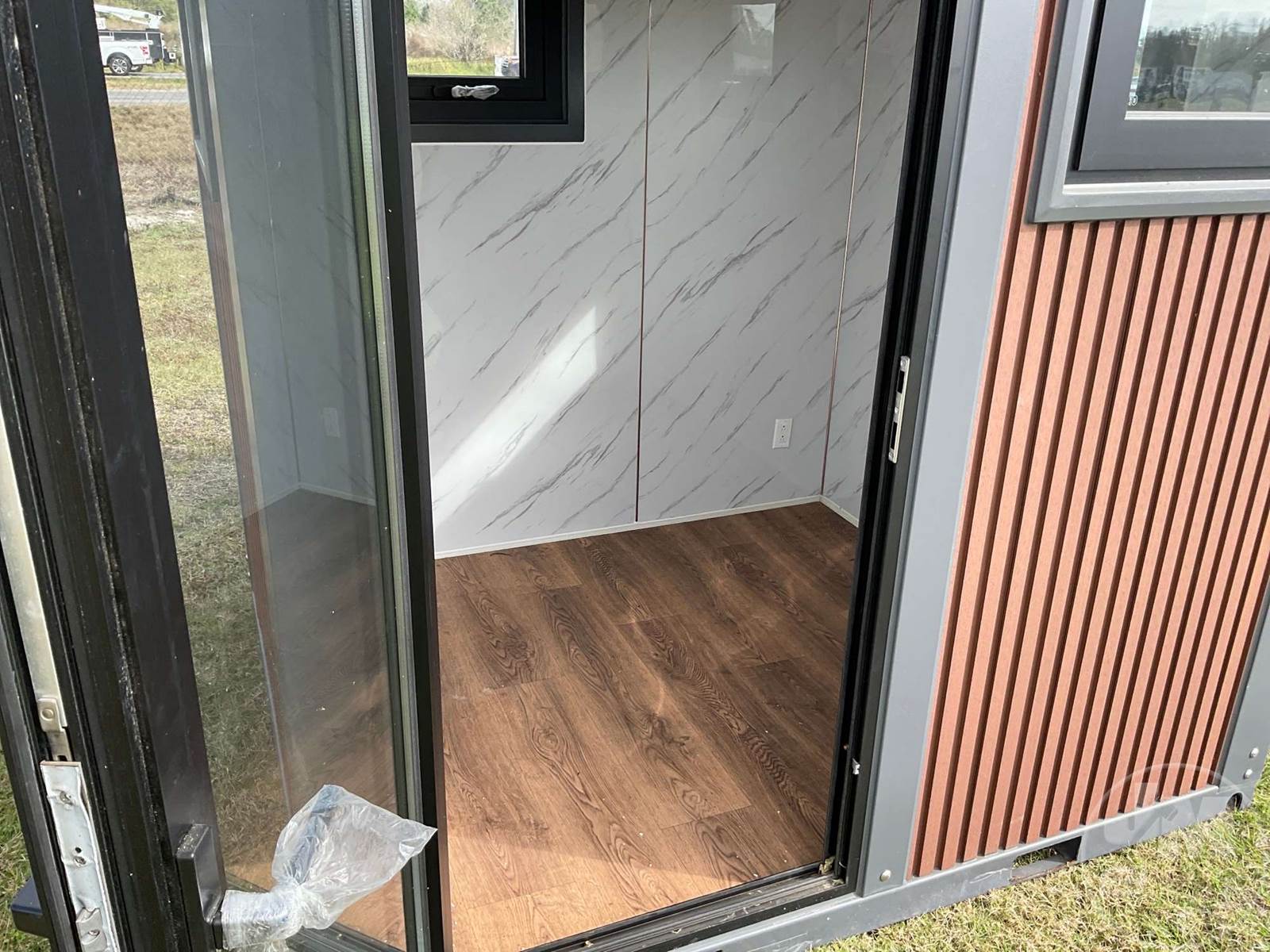 Container, Office Container, Side Entry Door, Wood Floor, 7'W, Windows, Glass