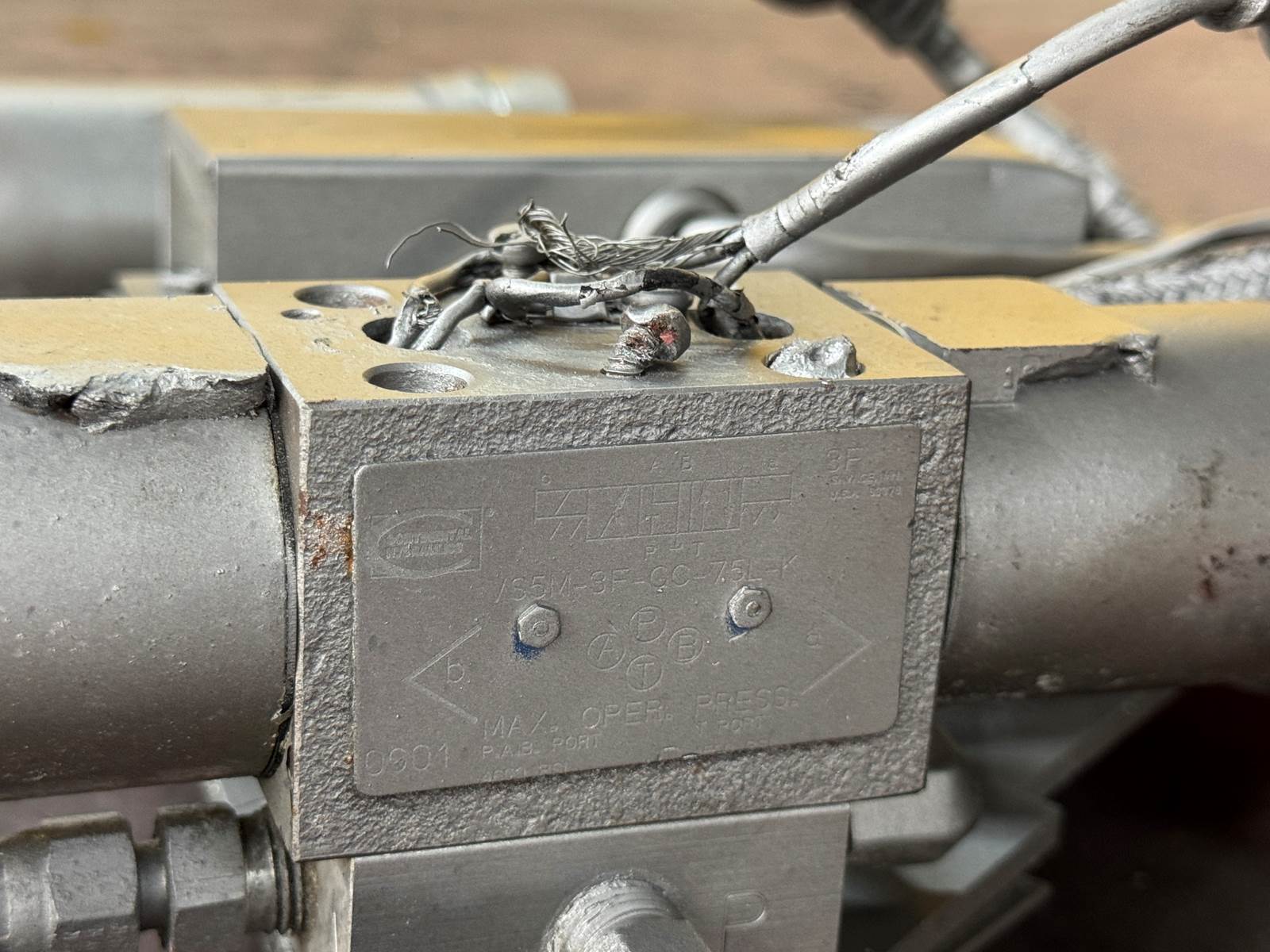 (GOOD USED) Continental Hydraulics Directional Control Valve VS5M-3F-GC-75L-K For Sale, 12 VDC, PAB Port 4600 PSI / 315 BAR, T Port 1500 PSI / 105 BAR, Model: VS5M3FGC75LK, 5-WAY / 3-Position Solenoid Valve, Double-Acting Hydraulic Cylinders, Stone Bonnett HT740 Control Valve Part # S-HS740-01R, SHS74001R,Serial # 75827, Stock # 9909