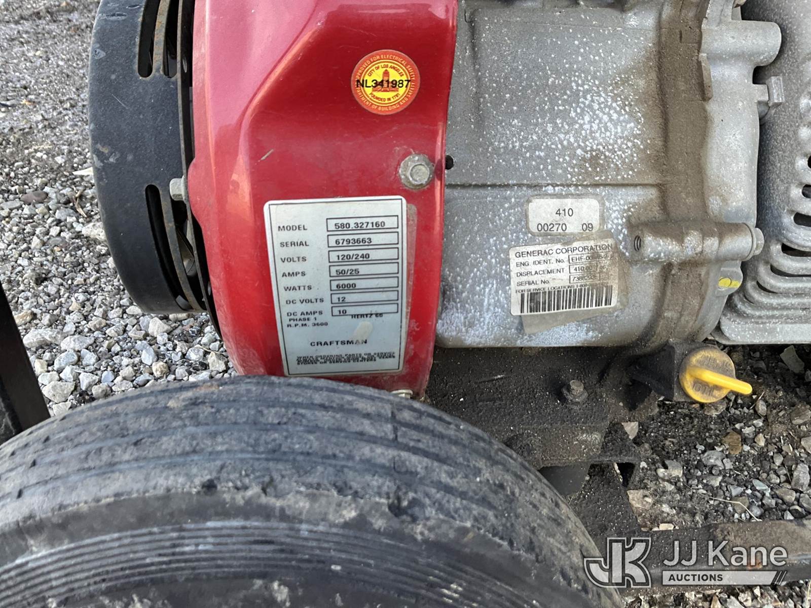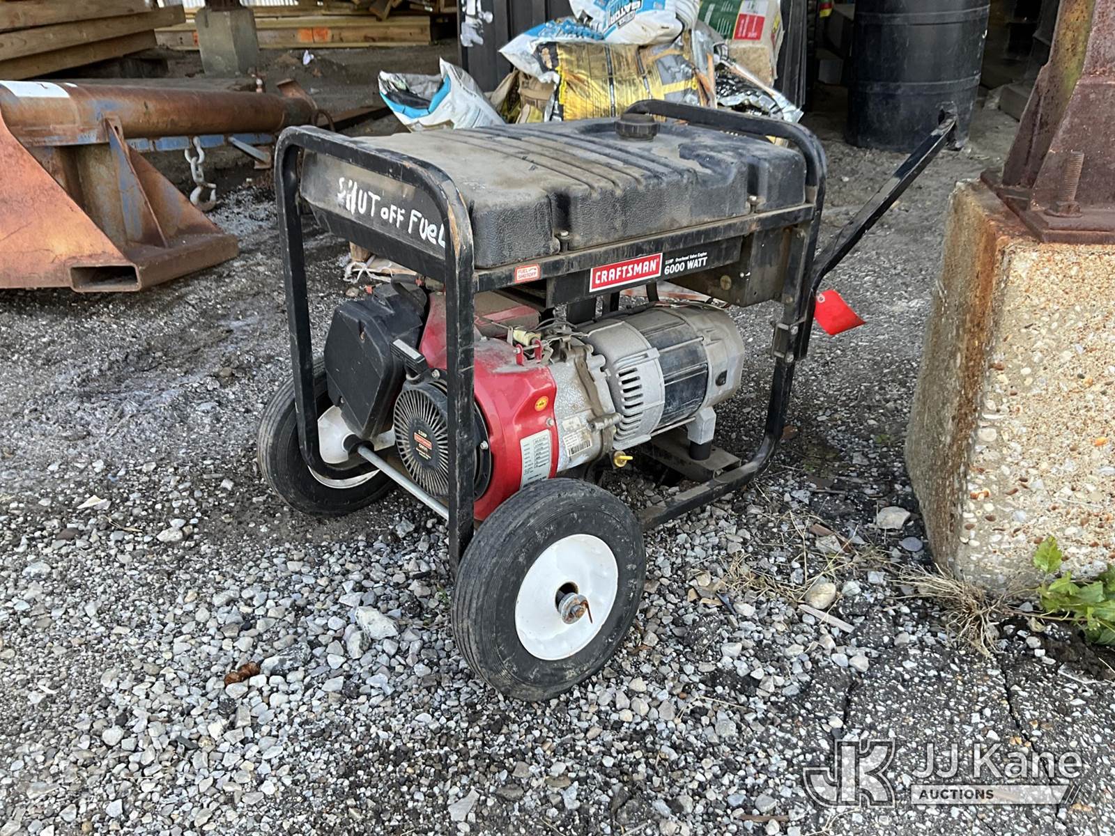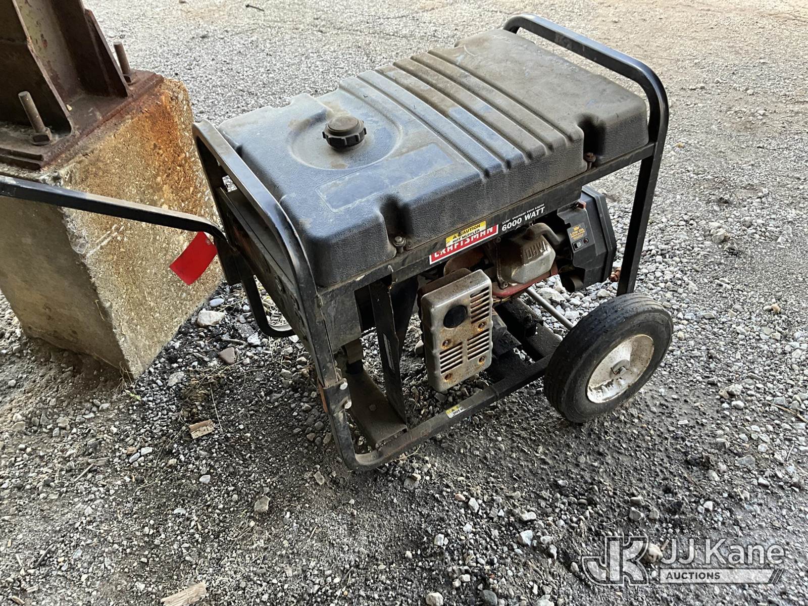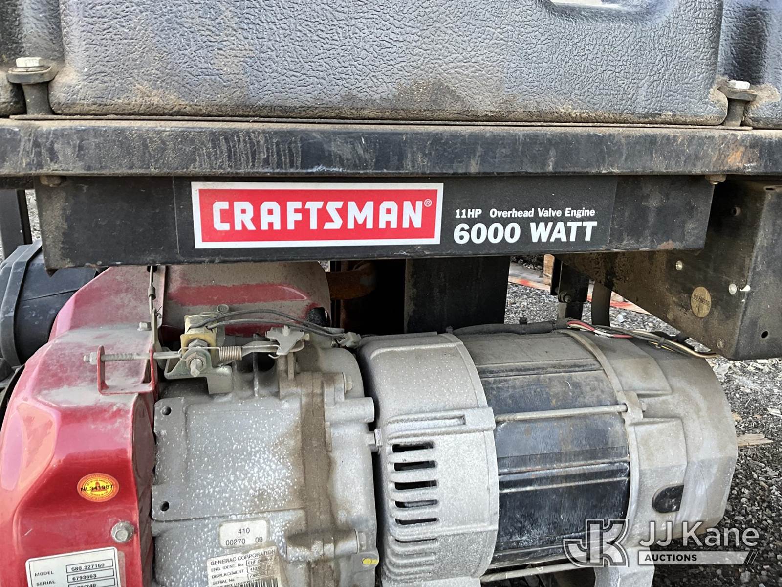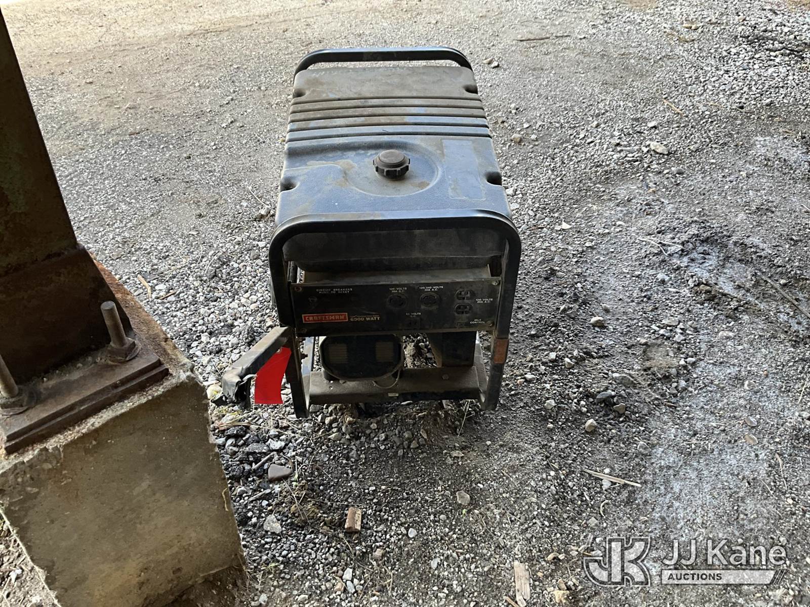 Craftsman 6000 Watt Generator (Condition Unknown) NOTE: This unit is being sold AS IS/WHERE IS via Timed Auction and is located in Louisville, KY. For more information & removal arrangements please contact Spencer Owen @ 502-232-2541. Load Out will be by appointment only M-F; must call 24 HRS. in advance. Buyer/Hauler must present copy of paid invoice upon arrival. Purchaser acknowledges ALL lots must be removed within 5 business days of Auction, or a storage fee may be incurred. This item is used and may contain defects that are not immediately detectable. Text description and photos given are meant to be used as a guide only. The conditions are provided by the consignor; you are responsible for inspecting item before bidding. All information provided is believed to be correct but no warranty as such is either intended or implied. All items are sold AS IS - WHERE IS AND WITH ALL FAULTS AND DEFECTS THEREIN. Auctioneer Michael Whitebread / License # 256617 (Buyer is responsible for removal. Assistance by consignor or JJ Kane Auctioneers is not assured.)