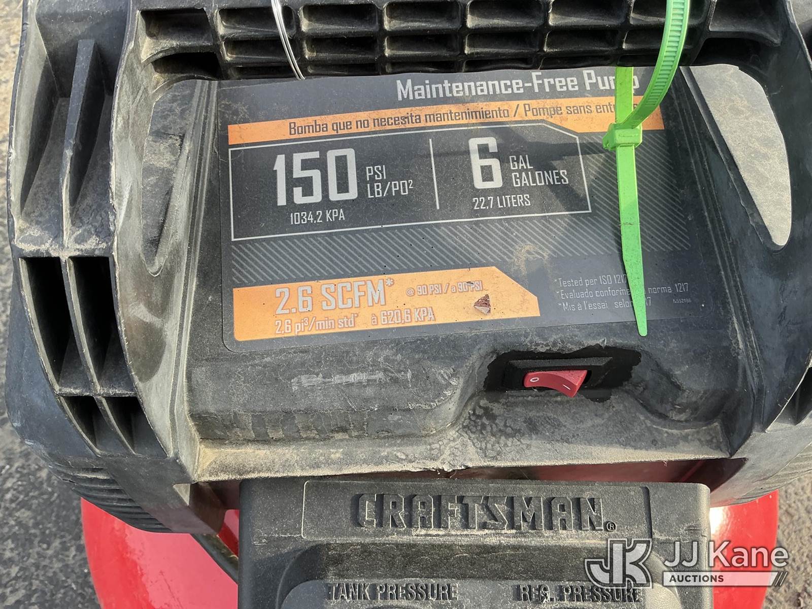 Craftsman 6gal Air Compressor (Used, Conditions Unknown ) NOTE: This unit is being sold AS IS/WHERE IS via Timed Auction and is located in Dixon, CA. Inspection & preview days for this unit are the 2 business days prior to the first day of items closing for this auction, item is located at 8668 Sparling Ln Dixon, CA 95620 and hours of operations are 8a-4p. For pre-sale questions, please contact JJ Kane Staff at (707) 678-8060 (dixon@jjkane.com). Dealer License Number 45696. (Buyer is responsible for removal. Assistance by consignor or JJ Kane Auctioneers is not assured.)
