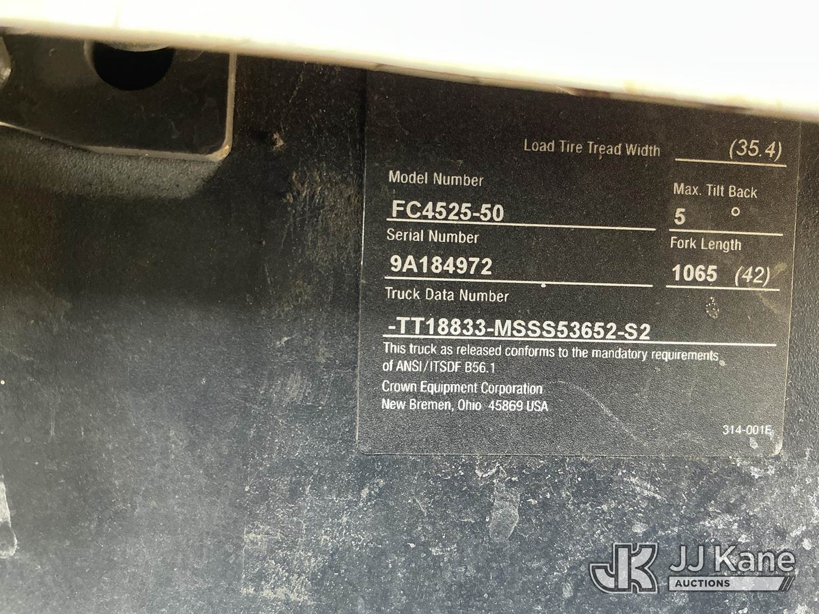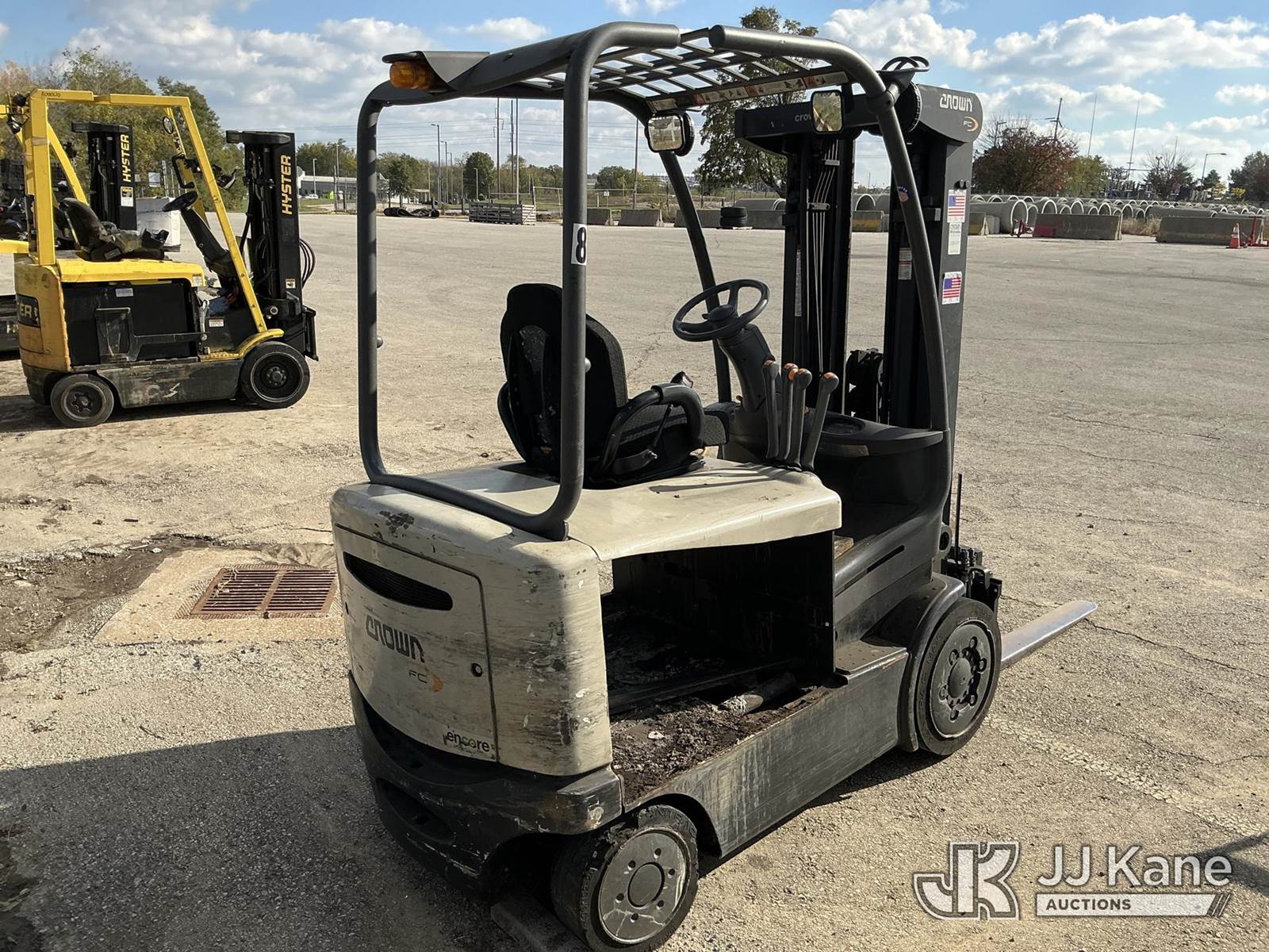 Crown FC4525-50 Solid Tired Forklift, s/n 9A184972, Hydrostatic, battery powered, with 5,000lb cap & side shift, (Conditions Unknown) (Unable To Verify Hours, Customer States: 13273 Hours, Needs Battery & Rear Wheel Bearing) NOTE: This unit is being sold AS IS/WHERE IS via Timed Auction and is located in Kansas City, MO. Inspection & preview days for this unit are the 2 business days prior to the first day of items closing for this auction, item is located at 962 Tel Aviv Ave Kansas City, MO 64153 and hours of operations are 8a-4p. For pre-sale questions, please contact Ricky McPherson @ (816) 610-2250. (Buyer is responsible for removal. Assistance by consignor or JJ Kane Auctions is not assured.)