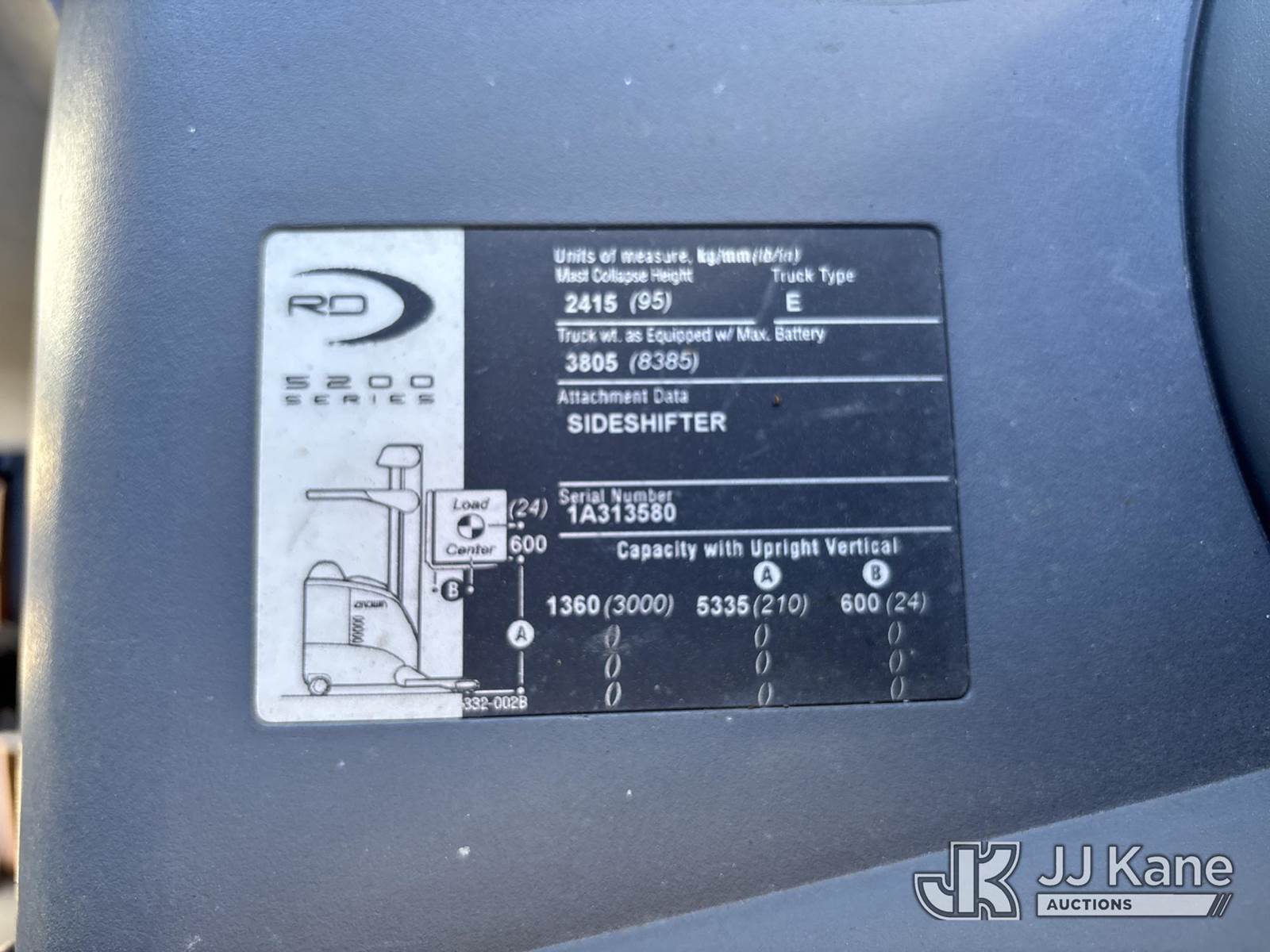 Crown RD5220-30 Stand-Up Forklift Order Picker, s/n 1A313580, electric, with 3,000 lb. capacity, 3 ft. 6 in. forks, (Not Running, Condition Unknown) (Body & Paint Damage, No Hours Displayed) NOTE: This unit is being sold AS IS/WHERE IS via Timed Auction and is located in Riviera Beach, FL. An inspection day for FPL auction items will be conducted on the Friday before the auction from 8a-3p at 2455 Port West Boulevard, Riviera Beach, FL 33407. Winning Buyer/Hauler must present copy of paid invoice upon arrival to pick up. For load out and pick up information, please reference the release form sent out after purchase. Any more information please call Andy Garcia @ 561-215-0085. (Buyer is responsible for removal. Assistance by consignor or JJ Kane Auctions is not assured.)