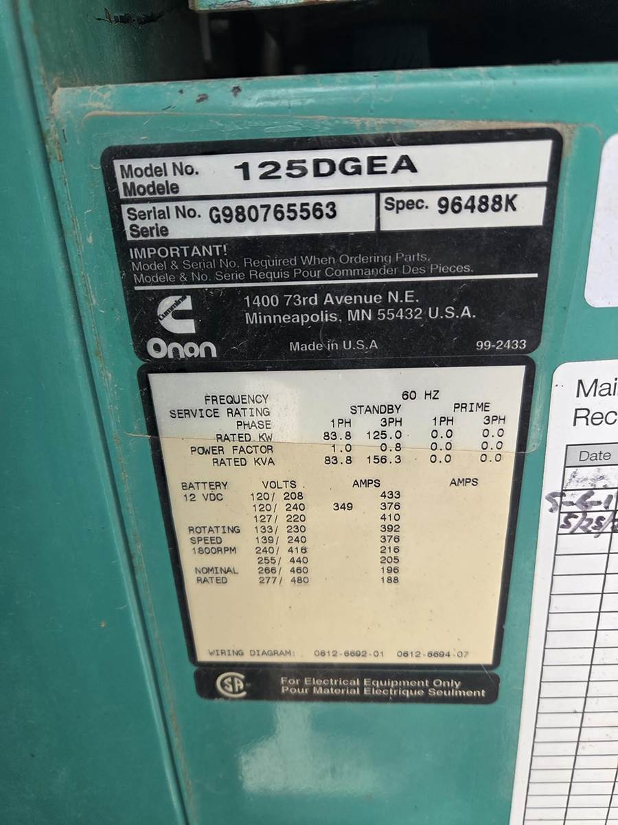 Cummins 125 Kw Diesel Generator
