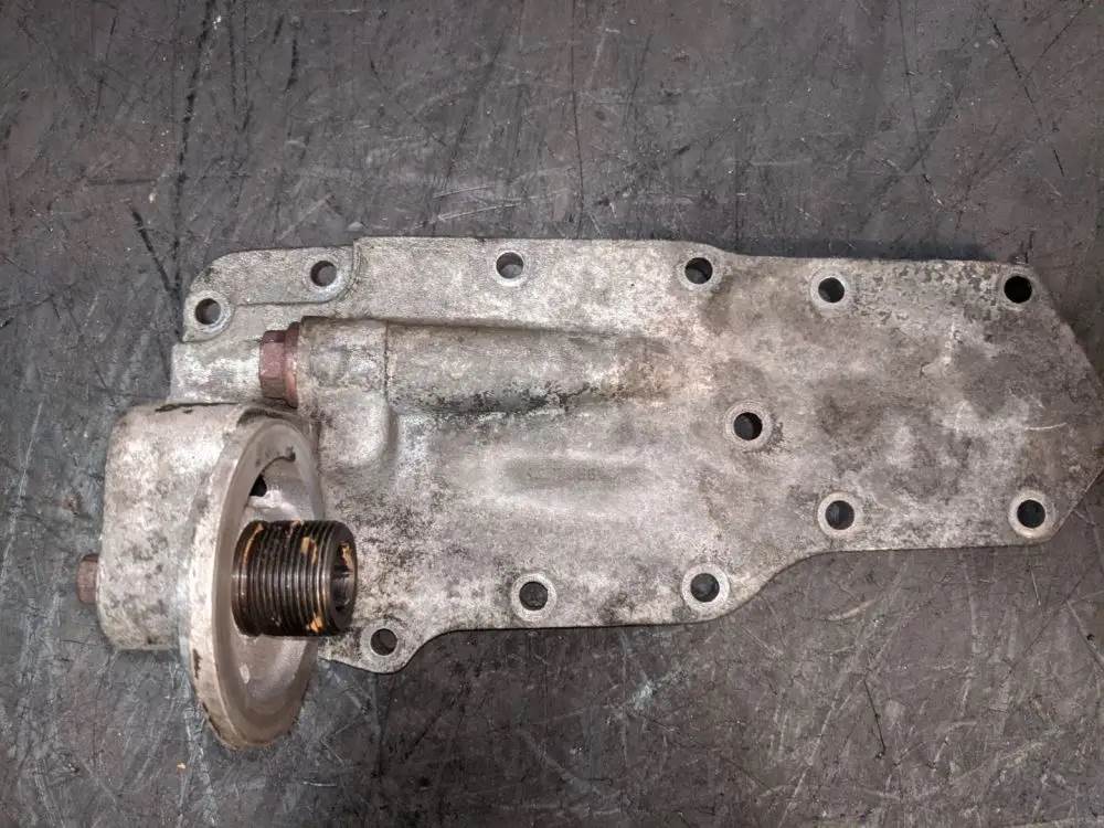 Good, used oil filter base from a Cummins ISB 5.9L engine. The oil filter base has been inspected and appears to be in good working condition. There is no visible damage to the oil filter base. The bolt holes are clear and in good condition. There is minor corrosion seen on the oil filter base. The casting number is 3942366. The engine serial number is 56685458. Please see the photos attached. If you have any further questions, please feel free to call or email us. We ship anywhere! Thank you!, Serial#: 3942366, Core Charge: 0.00, Casting#: 3942366