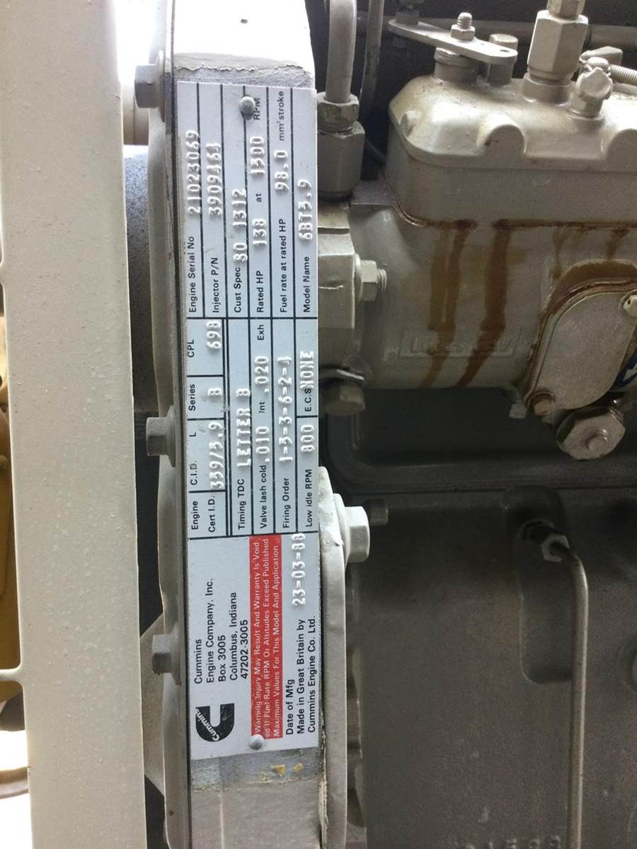 Type number: 6BT5.9 CPL0698 GENERATOR 110KVA