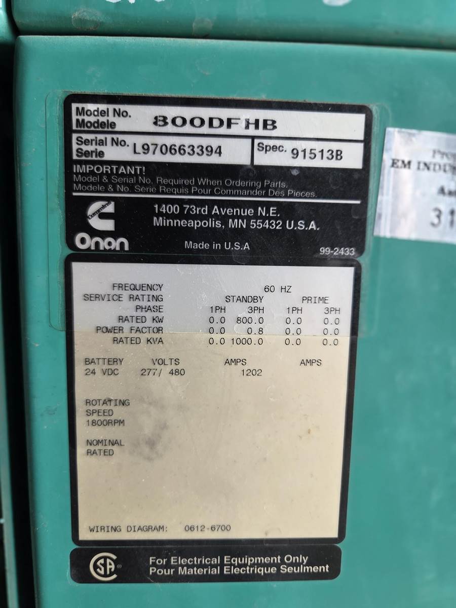Cummins 800 KW Diesel Generator
