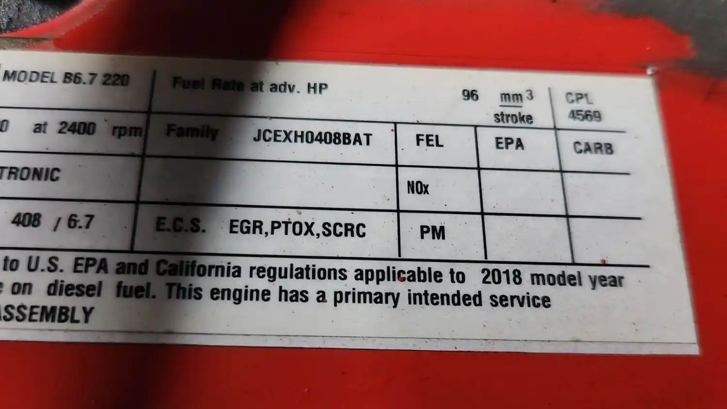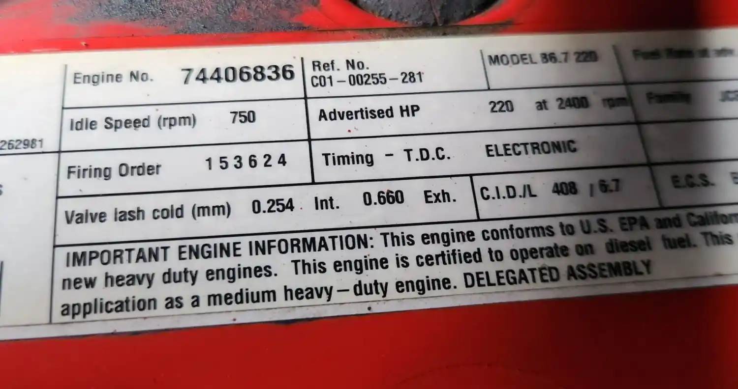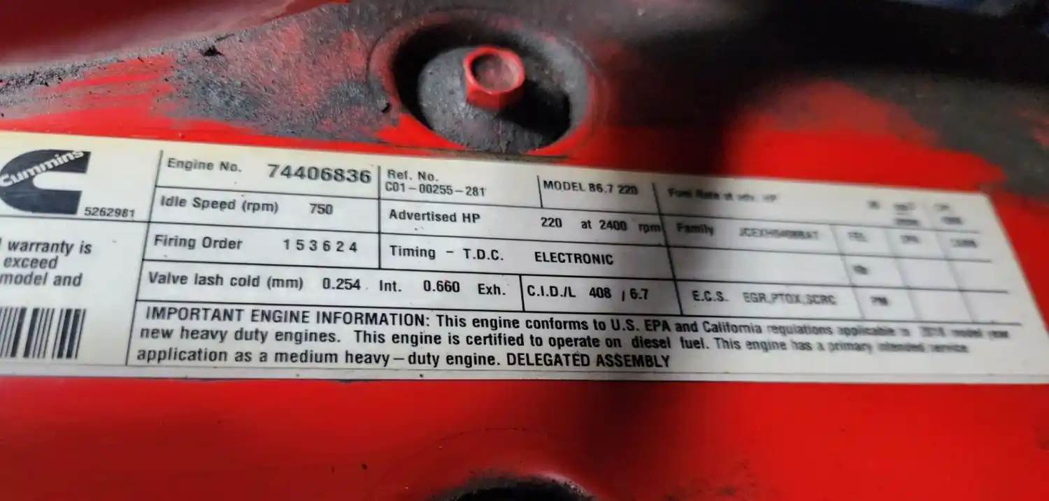 (Used) 2018 Cummins B6.7 220, ENGINE ASSEMBLY- Family Number: JCEXH0408BAT, Displacement: 6.7L, Horsepower: 220, Ar.No./CPL: 4569, Serial Number: 74406836, Part Number: C01-00255-281, E.C.S: EGR, PTOX, SCRC, For more information about this item, give us a call. We ship Worldwide! (CRG HEAVY TRUCK PARTS) 929 W PULASKI HWY ELKTON, MD 21921, Serial#: 74406836, Horse Power: 220, ARR/CPL: 4569, Casting#: 74406836