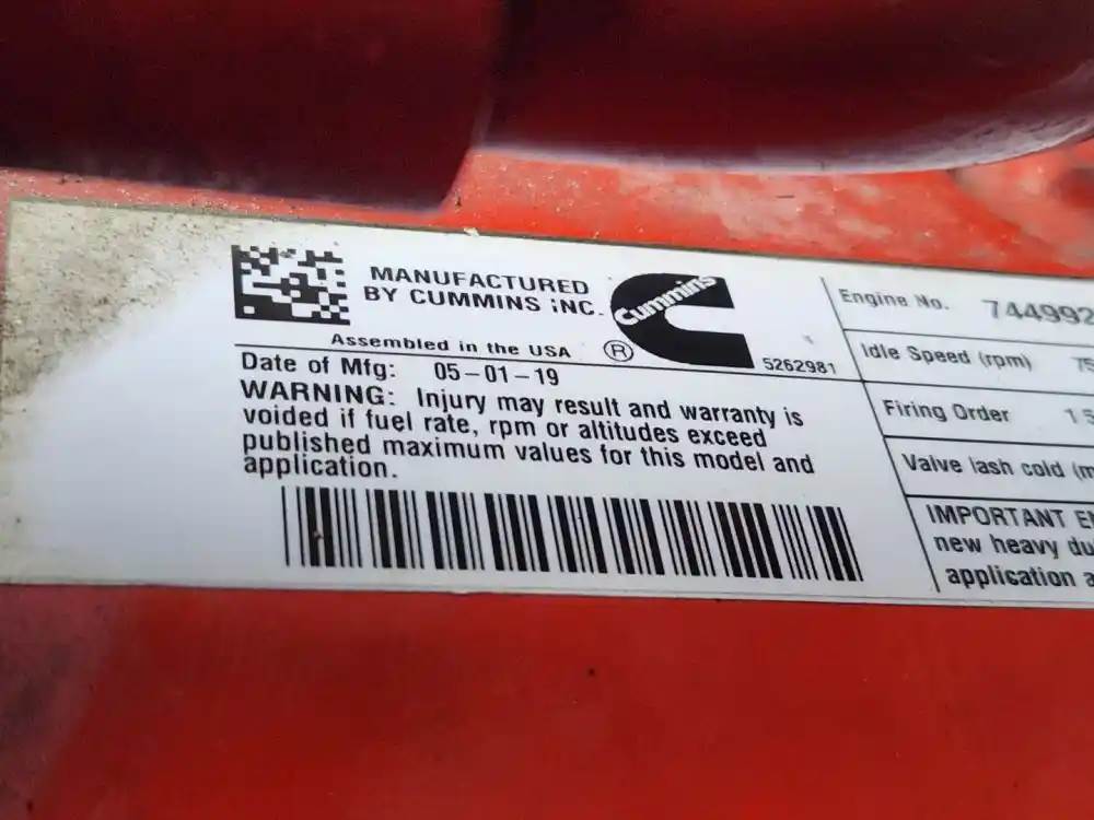 (Used) 2019 Cummins B6.7, ENGINE ASSEMBLY- Family Number: KCEXH0408BAT, Displacement: 6.7L, Horsepower: 240, Ar.No./CPL: 4569, Serial Number: 74499273, Part Number: E2970AF8, E.C.S: EGR, PTOX, SCRC, For more information about this item, give us a call. We ship Worldwide! (CRG HEAVY TRUCK PARTS) 929 W PULASKI HWY ELKTON, MD 21921, Serial#: 74499273, Horse Power: 240, ARR/CPL: 4569, Casting#: 74499273
