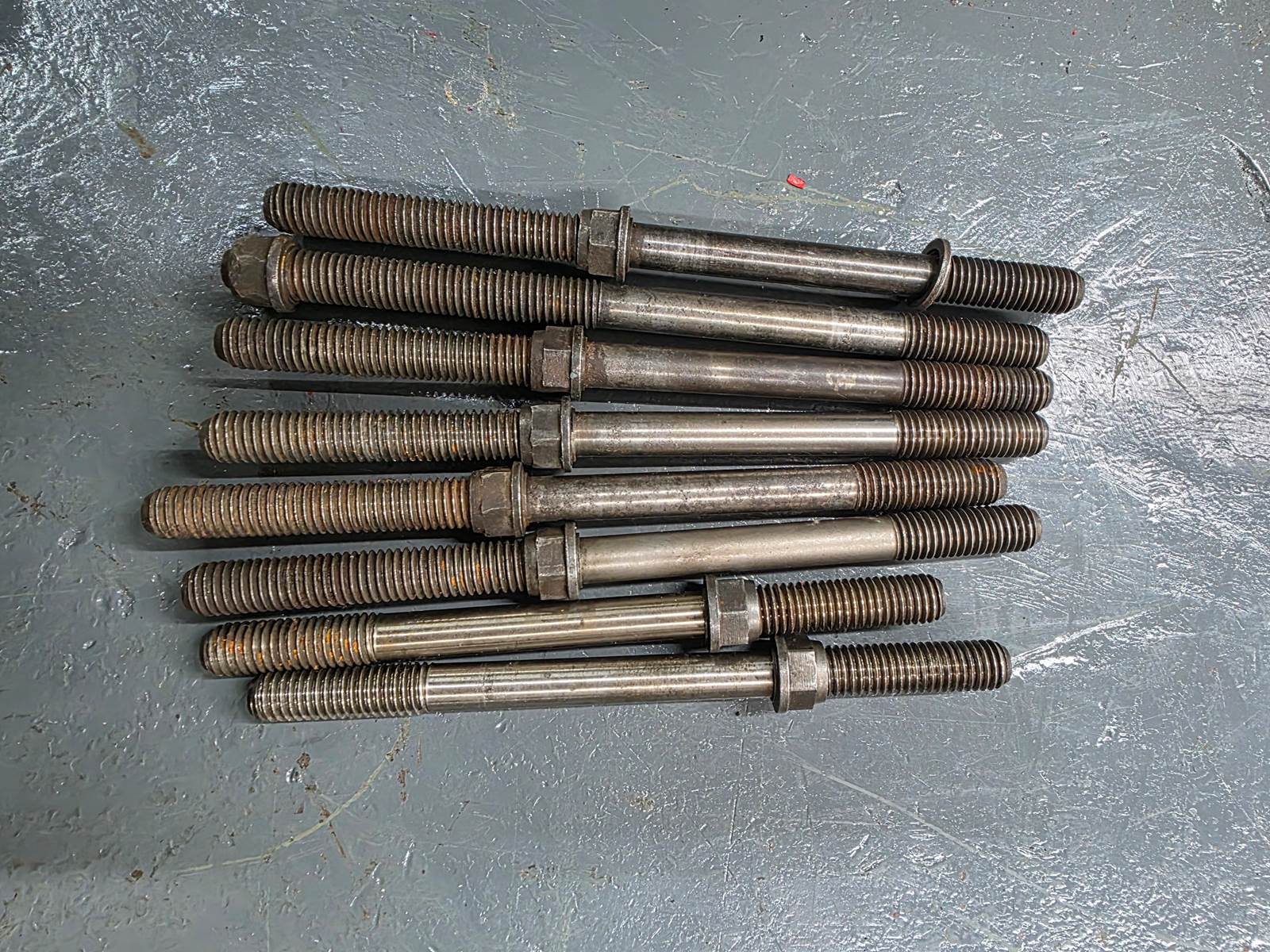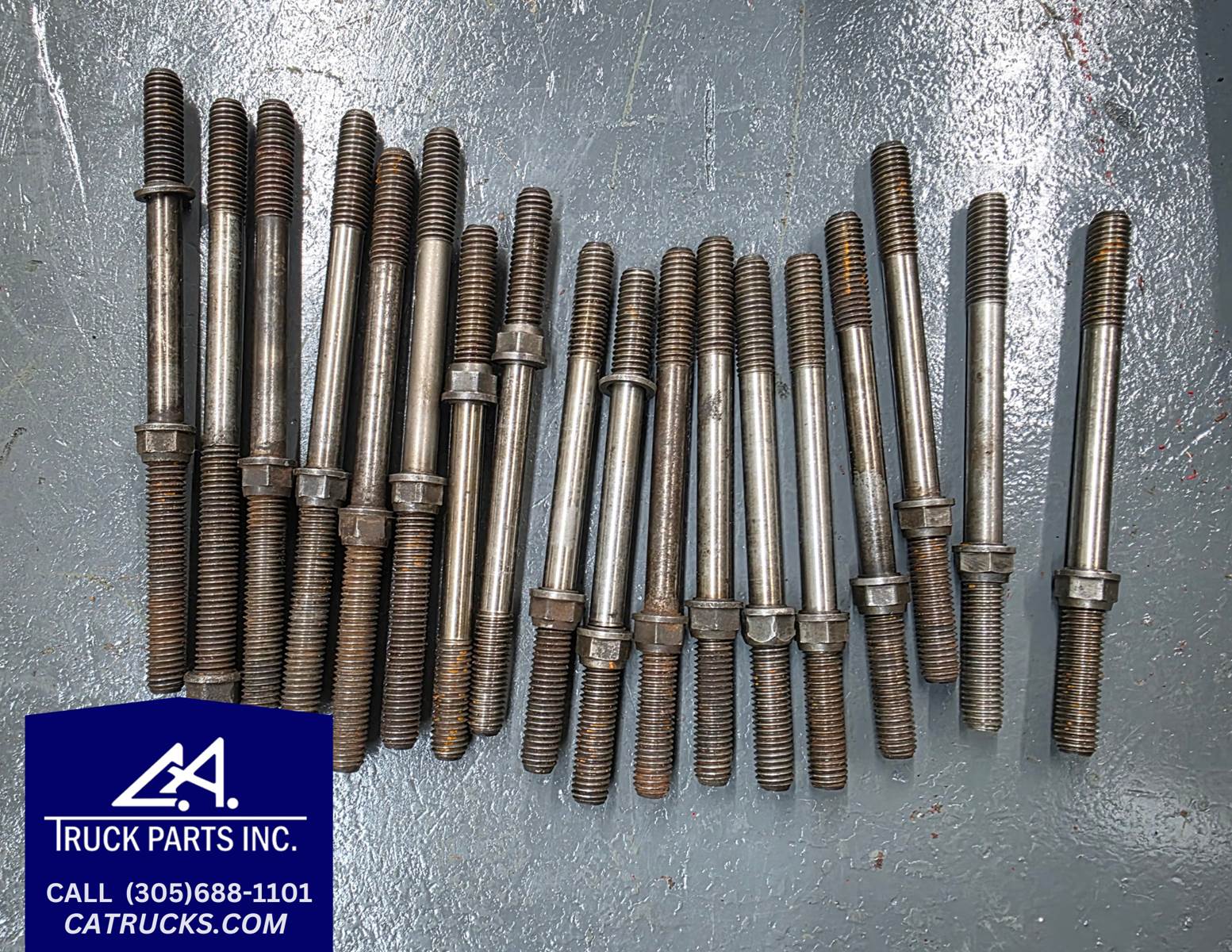 (GOOD USED) Cummins BigCam Engine (Jake) Brakes Stud Bolts w/ Washers Set of 18 For Sale, 6 : 8 1/8" , 12 : 7 1/8" Stock # 9789