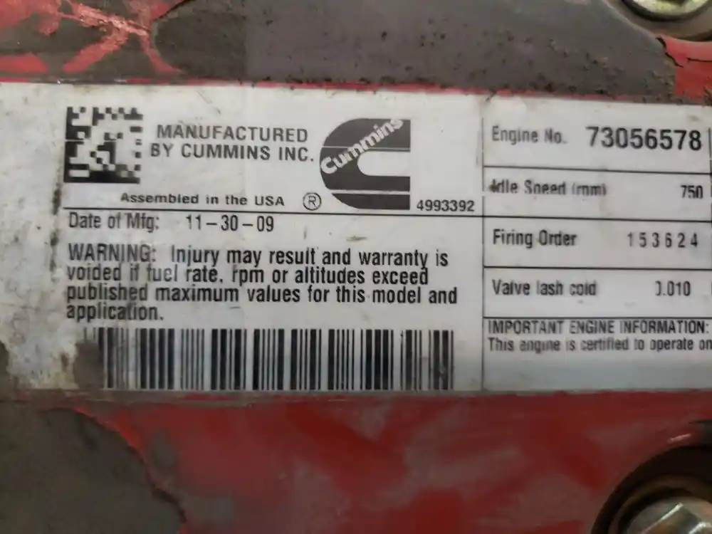 INCOMPLETE ENGINE, Serial#: 46981770, Horse Power: 200 HP @ 2300 RPM, ARR/CPL: 3238 / CM2150, Part Make: CUMMINS