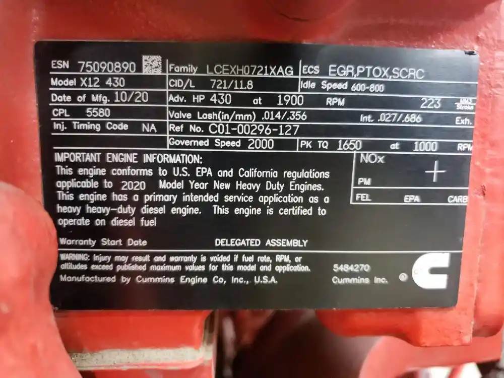 , Serial#: 75090890, Horse Power: 430HP @ 1900 RPM, ARR/CPL: 5580 / 11.8 LITRES, Part Make: CUMMINS