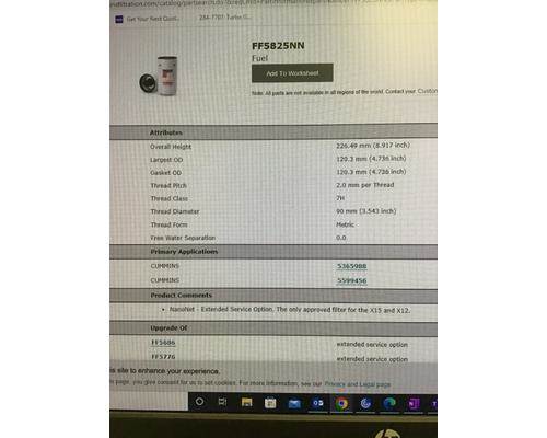 Cummins Fuel Filter ISX 4 Micron, Part # FF5825NN