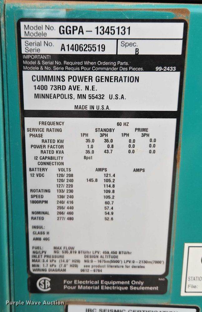 Cummins GGPA-1345131 generator