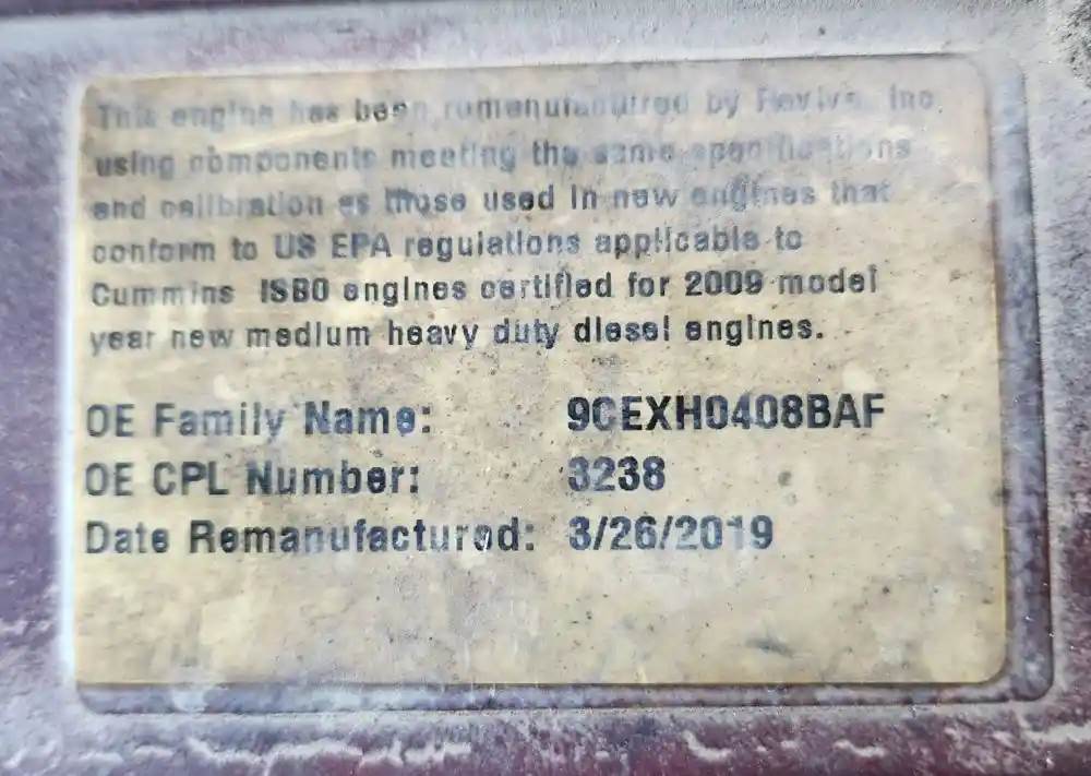 (Used) 2009 Cummins ISB 6.7, ENGINE ASSEMBLY- REMANUFACTURED!! Family Number: 9CEXH0408BAF, Displacement: 6.7L, Horsepower: 200, Ar.No./CPL: 3238, Serial Number: 65119C062, Part Number: 65G7D200B, For more information about this item, give us a call. We ship Worldwide! (CRG HEAVY TRUCK PARTS) 929 W PULASKI HWY ELKTON, MD 21921, Serial#: 65119C062, Horse Power: 200, Casting#: 65119C062, ARR/CPL: 3238
