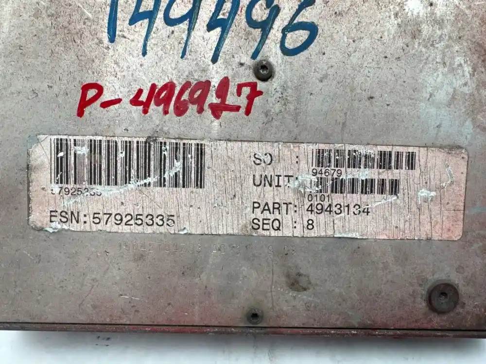(Used) Cummins 2010 ISB ENGINE ECM- Part Number: 4943134, Serial Number: 118227, ESN: 57925335, ECM Code: AU90196.03, CM CM2150D, P4943134, 2150DH118227, T3459, 3 Plugs Plug 1: 4 pins Plug 2: 60 pins Plug 3 60 pins For more information about this item, give us a call. We ship Worldwide! (CRG HEAVY TRUCK PARTS) 929 W PULASKI HWY ELKTON, MD 21921, Serial#: 118227
