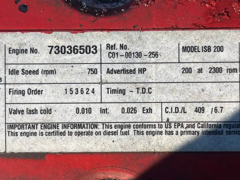 (Used) 2009 Cummins ISB 200, ENGINE ASSEMBLY- Family Number: 9CEXH0408BAG, Displacement: 6.7L, Horsepower: 200, CPL: 3389, Serial Number...