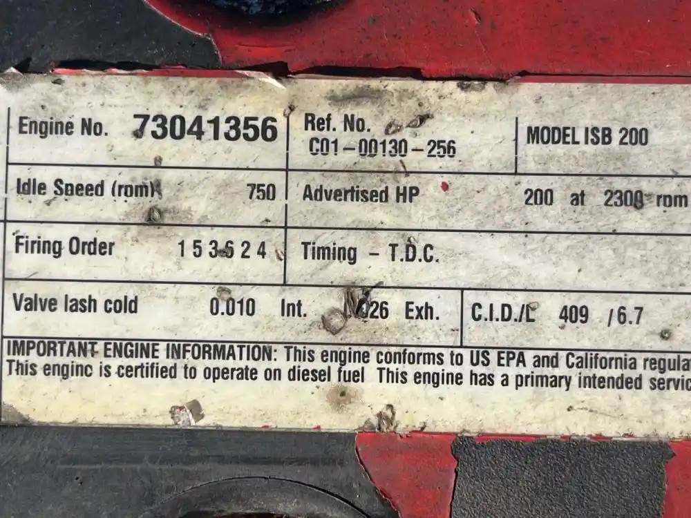 (Used) 2009 Cummins ISB, ENGINE ASSEMBLY- REMANUFACTURED- Family Number: 9CEXH0408BAG, Displacement: 6.7L, Horsepower: 200, Ar.No.CPL: 3389, Serial Number: 73041356, E.C.S: PCM, EGR, Reference images for condition, For more information about this item, give us a call. We ship worldwide! (CRG HEAVY TRUCK PARTS) 929 W PULASKI HWY, ELKTON, MD 21921, Serial#: 73041356, Horse Power: 200, Casting#: 73041356, ARR/CPL: 3389