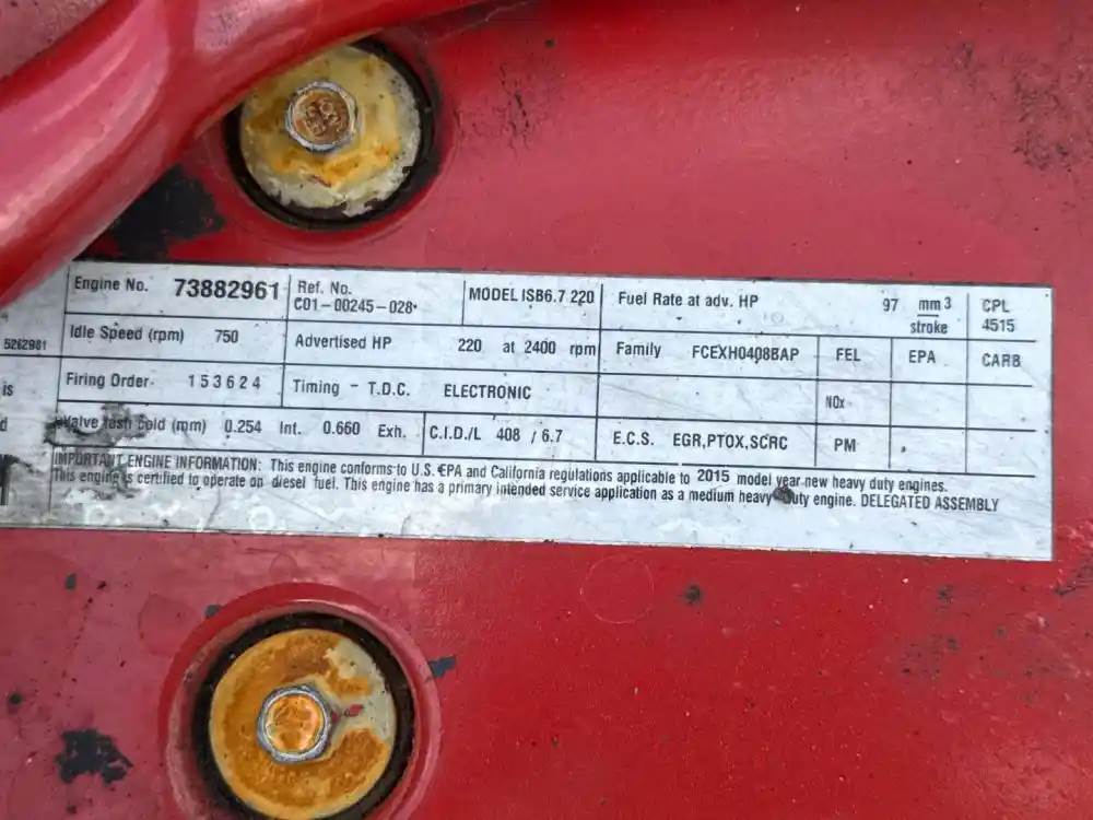 (Used) 2015 Cummins ISB6.7, ENGINE ASSEMBLY- Family Number: FCEXH0408BAP, Displacement: 6.7L, Horsepower: 220 Ar.No./CPL: 4515, Serial Number: 73882961, Part Number: C01-00245-028, E.C.S.: EGR, PTOX, SCRC, Reference images for condition For more information about this item, give us a call. We ship Worldwide! (CRG HEAVY TRUCK PARTS) 929 W PULASKI HWY ELKTON, MD 21921, Serial#: 73882961, Horse Power: 220, ARR/CPL: 4515, Casting#: 73882961