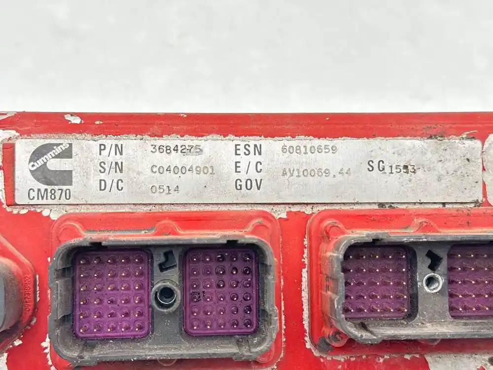 (Used) 2009 Cummins ISX, ENGINE ECM- Part Number: 3684275, Serial Number: C04004901, ESN: 60810659, E/C GOV: AV10069. 44, SC 11553, P3684275, 6EC8871C04004901, T0804, 28403592001 PSS 100713, 1 Rectangular Plug with 50 Pins, 1 Rectangular Plug with 60 Pins, 1 Rectangular Plug with 4 Pins, Reference images for condition, For more information about this item, give us a call. We ship Worldwide! (CRG HEAVY TRUCK PARTS) 929 W PULASKI HWY ELKTON, MD 21921, Serial#: C04004901