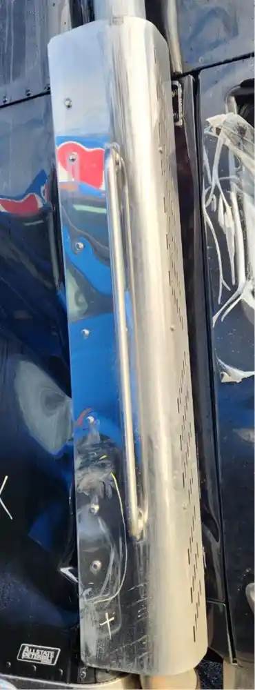 (Used) 2018 Peterbilt 579, MUFFLER SHIELDS- Side: Passenger Right Side, Engine: Cummins X15, Material: Stainless Steel, Dimensions: Height= 60", Reference images for condition, For more information about this item, give us a call. We ship Worldwide! (CRG HEAVY TRUCK PARTS) 929 W PULASKI HWY ELKTON, MD 21921, Serial#: TBD