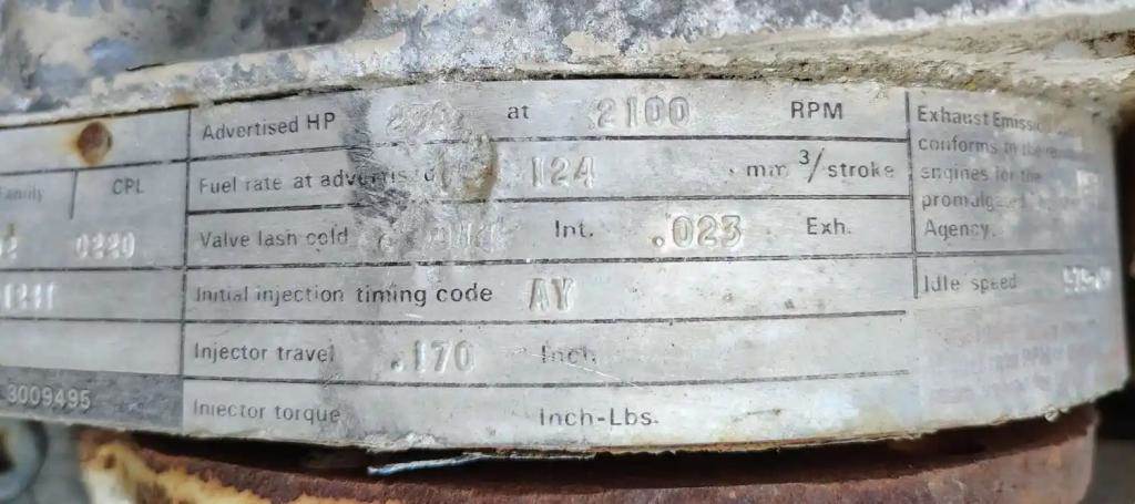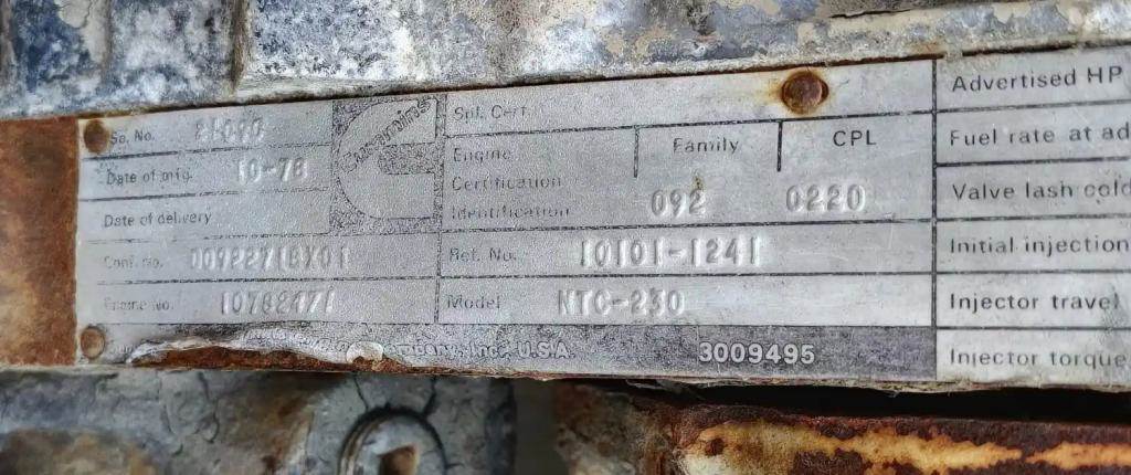 Cummins NTC-230 Small Cam w/ Jakes, S/N 10782471, CPL 220. Inspection Pending.