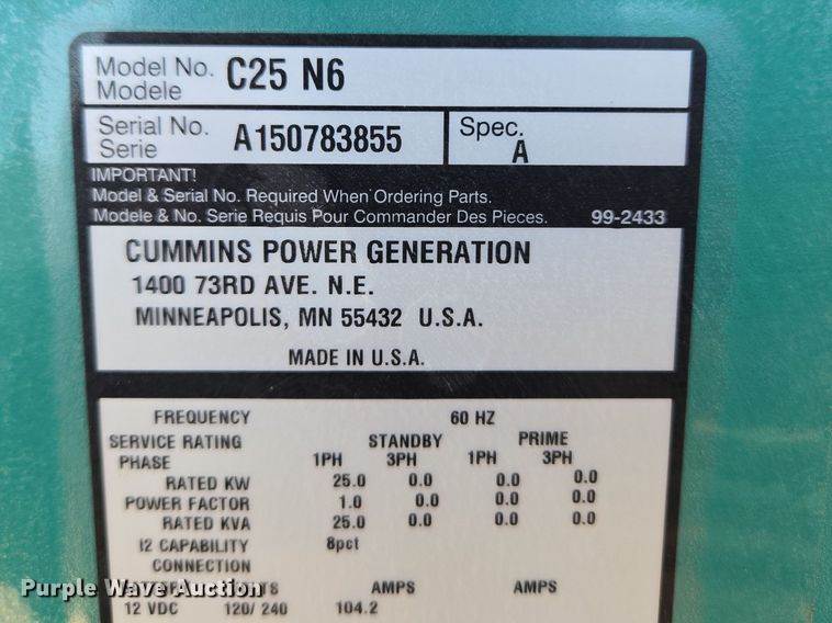 Cummins Power Generation C25 N6 generator