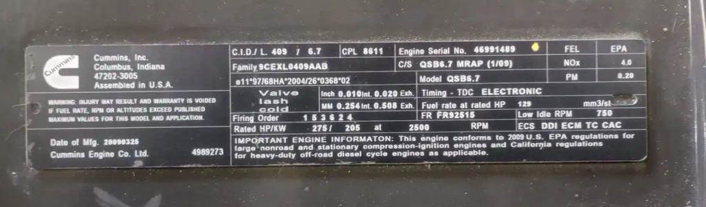 Cummins QSB 6.7 Engine - 275 HP, ARR/CPL 8611