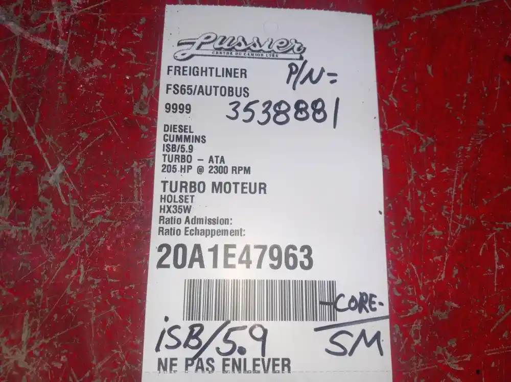 CORE, Serial#: 3538881, Horse Power: 205 HP @ 2300 RPM, Part Make: HOLSET