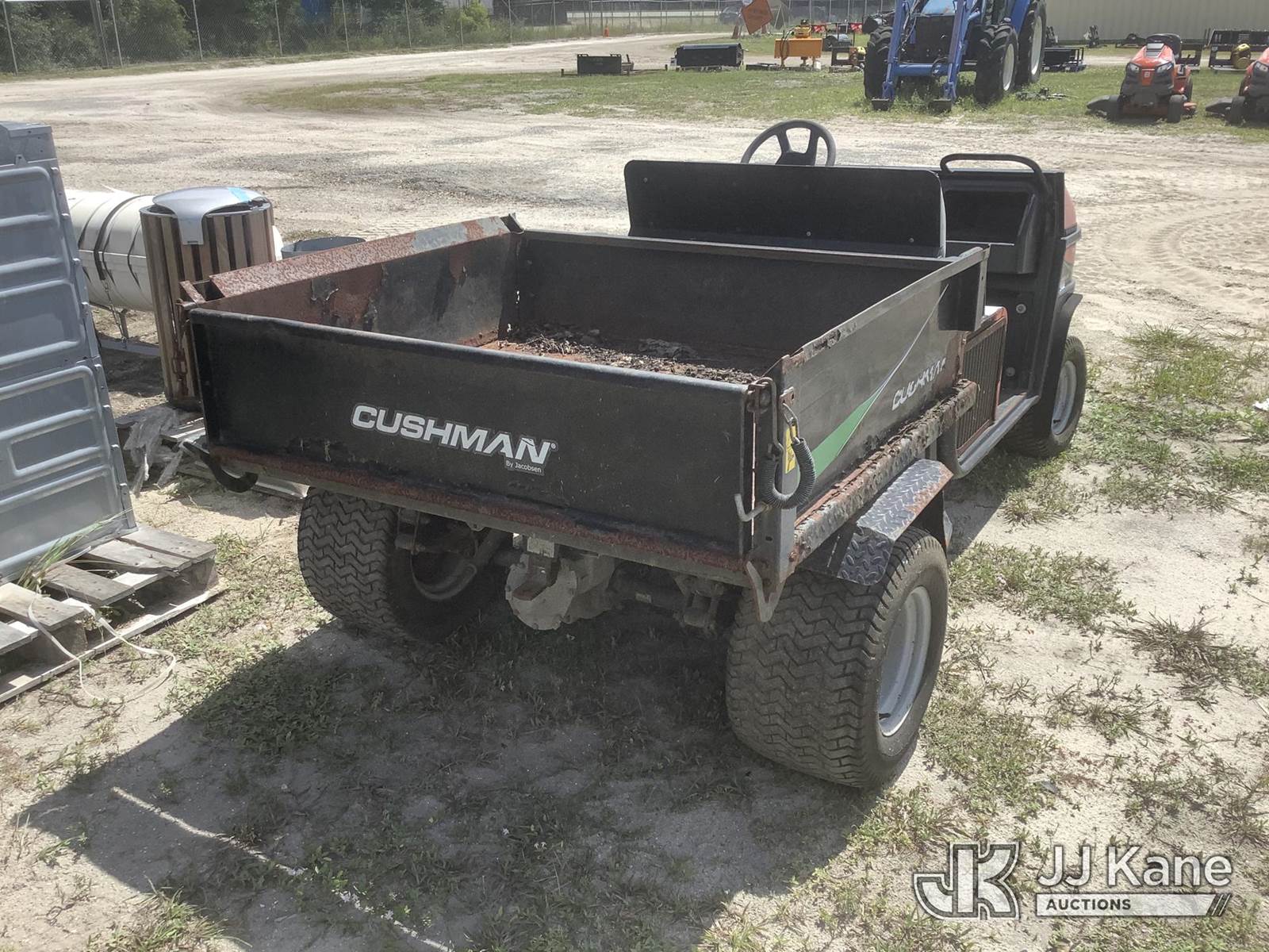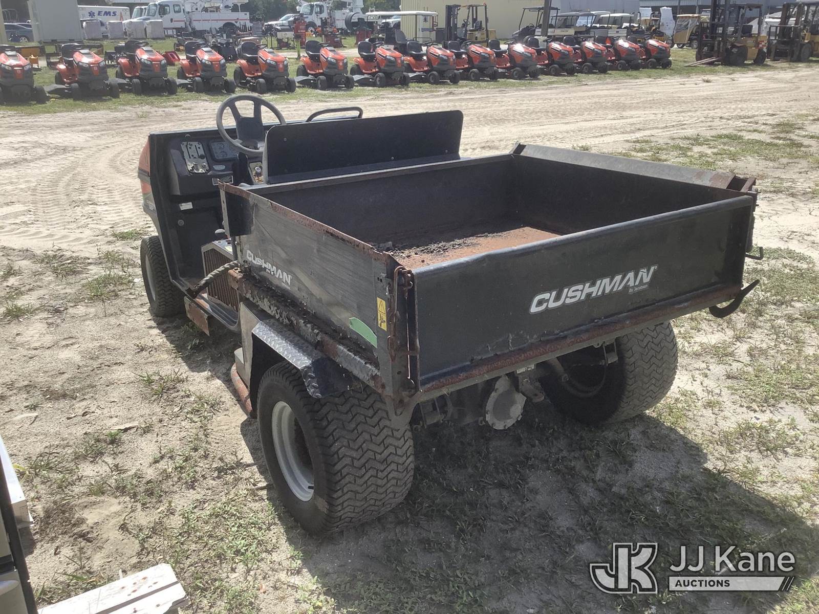 Cushman Turf-Truckster Yard Cart, s/n 2413062, Auto, Gas, (Not Running, Condition Unknown) (No Key, Missing Battery, Rust Damage) (Reads 5,268 hours) NOTE: This unit is being sold AS IS/WHERE IS via Timed Auction and is located in Thonotosassa, FL. Inspection & preview days for this unit are the 2 business days prior to the first day of items closing for this auction, item is located at 11720 N US 301 Thonotosassa, Fl 33592 and hours of operations are 8a-4p. For pre-sale questions, please contact Office Staff @ (813) 986-2485. (Buyer is responsible for removal. Assistance by consignor or JJ Kane Auctioneers is not assured.)