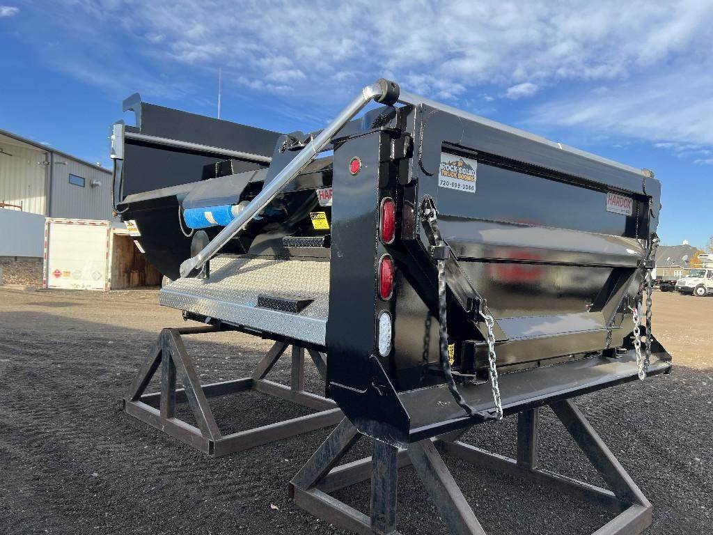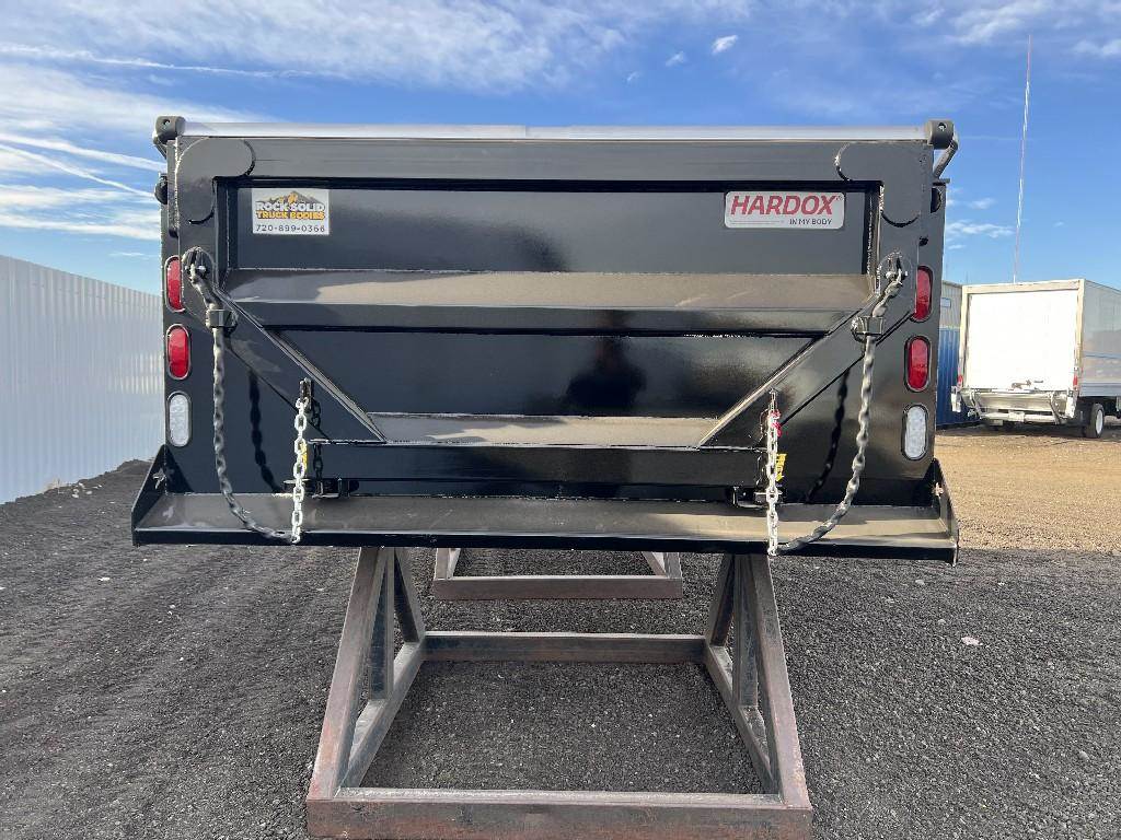 12'L Dump Body, New Condition. Roll On Cover, Rear Swing Door. Quality Install Available, Call DTI Trucks for more information and a shipping quote.
