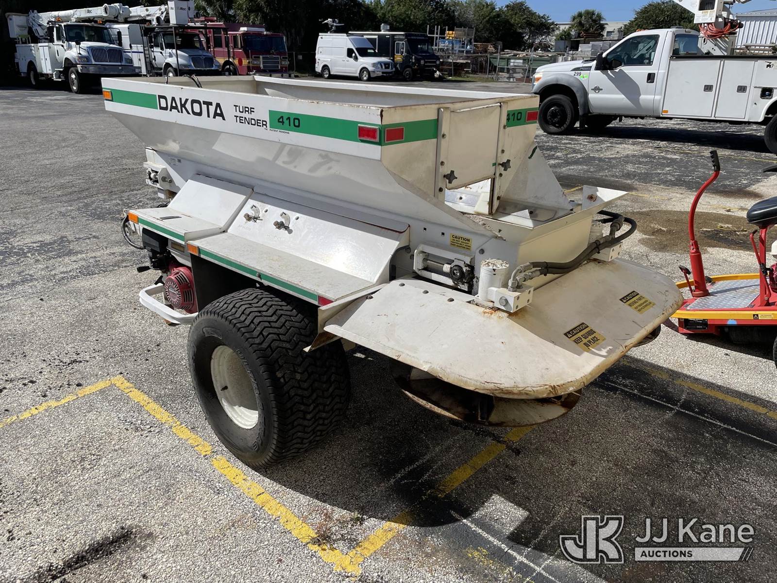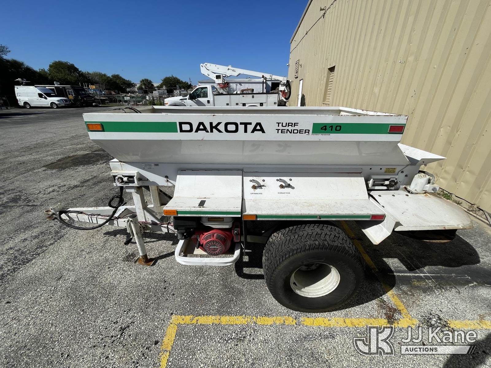 Dakota Turf Tender 410, Honda Gas, Pull-Behind, s/n FL 17501305 (Seller States: Operates) NOTE: This unit is being sold AS IS/WHERE IS via Timed Auction and is located in West Palm Beach, FL. For Pick Up & Removal information, please contact: Andy Garcia @ 561-215-0085. Removals require 24-hr Notice by Appointment Only, Buyer/Hauler must present copy of Paid-in-Full JJ Kane Release Form upon arrival. Purchaser acknowledges ALL lots must be removed within 10 business days of Auction, or a towing & storage fee may be incurred. (Buyer is responsible for removal. Assistance by consignor or JJ Kane Auctions is not assured.)