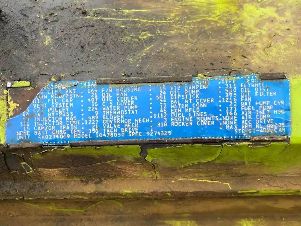 (Used) Detroit Diesel 4-71, ENGINE ASSEMBLY- Model: 10438030, Serial Number: 4A0274069, Detroit Diesel 4-71 engine, naturally aspirated, right hand exhaust & blower, front governor Reference images for condition, For more information about this item, give us a call. We ship worldwide! (CRG HEAVY TRUCK PARTS) 929 W PULASKI HWY, ELKTON, MD 21921, Serial#: 4A0274069, Casting#: 4A0274069