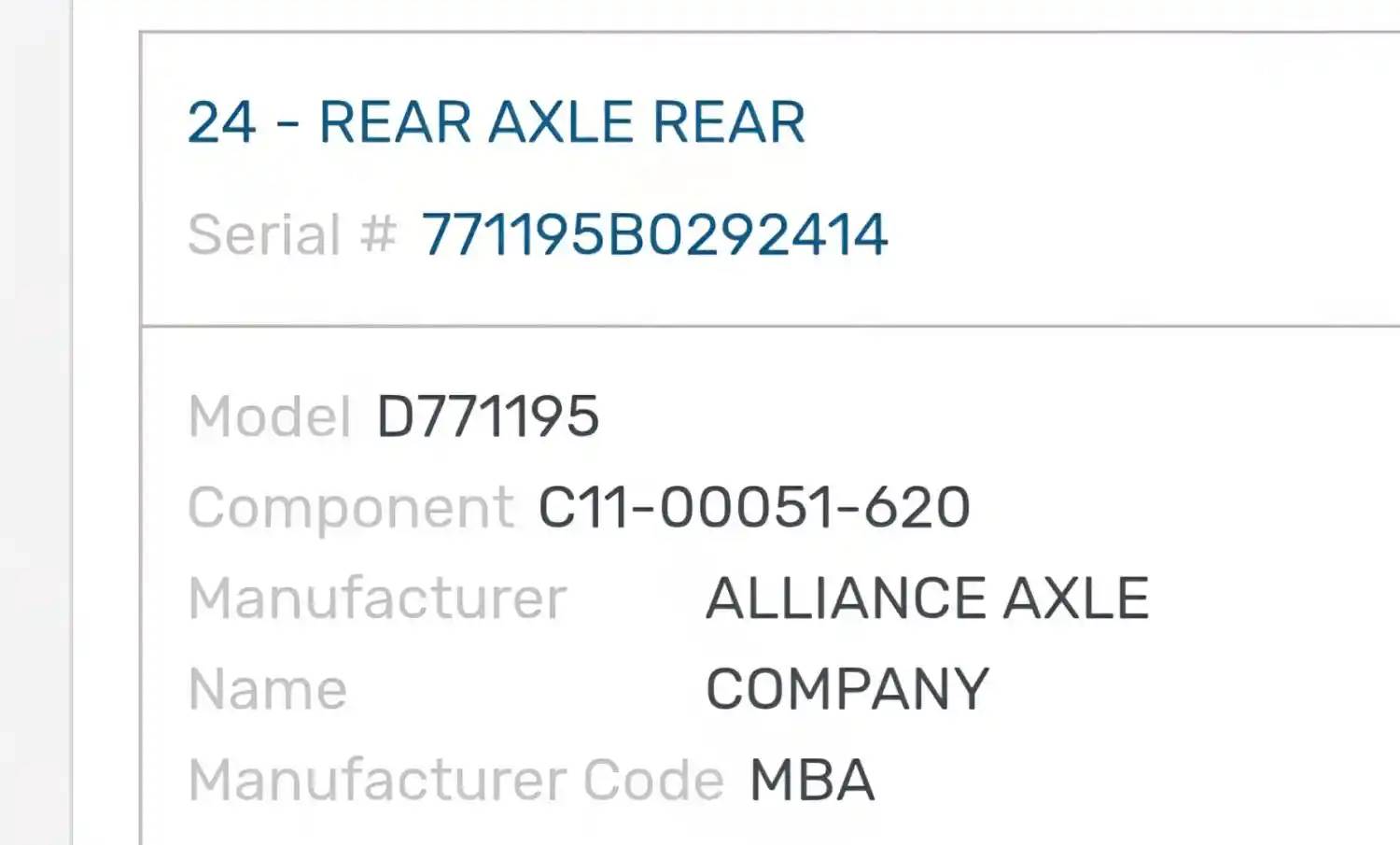 (Used) 2022 Freightliner Cascadia 126, REAR DIFFERENTIAL GEARS ONLY- Part Number: C11-00051-620, Serial Number: 771195B0292414, Make: Detroit, Model: DA-RT-40.0-4, Ratio: 2.85, Capacity: 20,000 Lbs, Reference images for condition, For more information about this item, give us a call. We ship Worldwide! (CRG HEAVY TRUCK PARTS) 929 W PULASKI HWY ELKTON, MD 21921, Serial#: 771195B0292414, Ratio: 2.85, Casting#: 771195B0292414