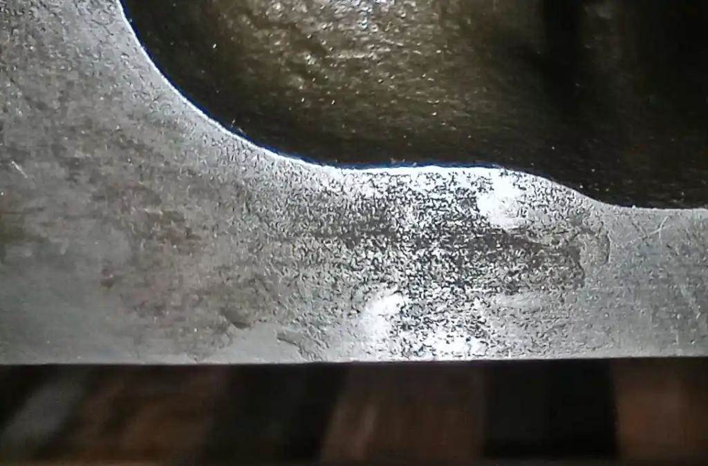 DD13 Cylinder Head, Rebuilt, Blemish. Cast # 47102. Bottom Surface Has Rust Mark On Exhaust Side Between #3 & #4. Light Surface Rust On Top.
