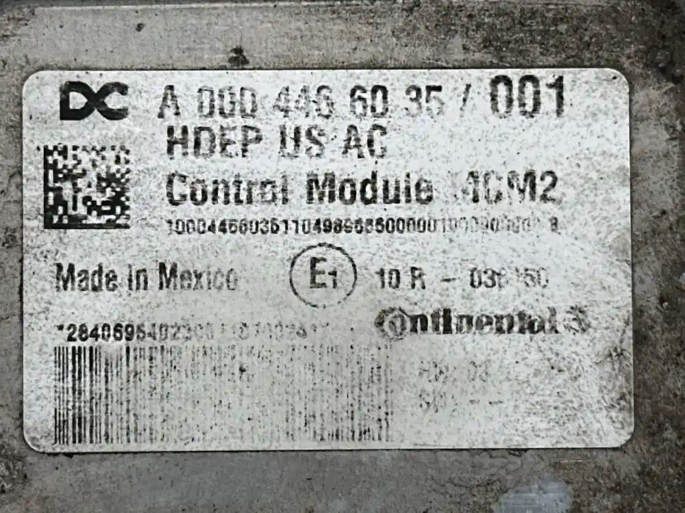 (Used) 2012 Detroit DD15, ENGINE ECM- Part Number: HDE0069025, Serial Number: HDE0069025, A 000 446 60 35/ 001, 100044660361104989655000001000000000 8, E1 R-036150, 284069542300417002431, HW: D3, (2 Plugs) 1 Plug Pins: 120 Pins Plug, 1 Plug Pins: 21 Pins Plug (Broken), Warranty Tag: 651281, Reference images for condition. For more information about this item, give us a call. We ship Worldwide! (CRG HEAVY TRUCK PARTS) 929 W PULASKI HWY, ELKTON, MD 21921, Serial#: HDE0069025