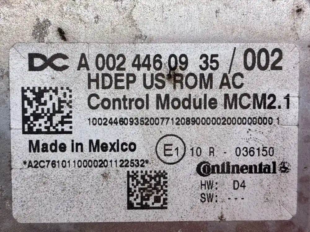 (Used) 2021 Detroit DD15, ENGINE ECM- Part Number: A024460935, Serial Number: HDE0781897 12, A 002 446 09 35 / 002, 100244609352007712089000002000000000 8, A2C7610110000201122532, E1 10 R 036150, HW: D4, SW: ---, 1 Rectangular Plug with 120 Pins, 1 Rectangular Plug with 21 Pins, Reference images for condition. For more information about this item, give us a call. We ship Worldwide! (CRG HEAVY TRUCK PARTS) 929 W PULASKI HWY, ELKTON, MD 21921, Serial#: HDE0781897 12
