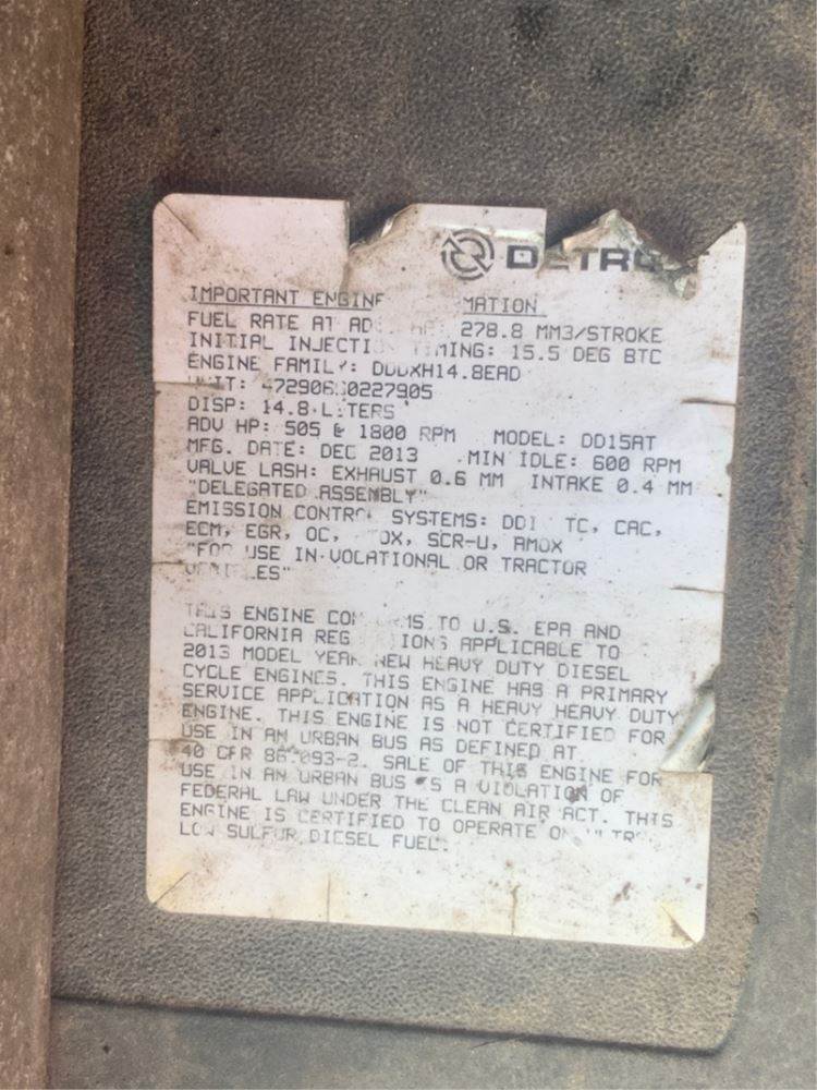(Used) 2013 Detroit DD15, ENGINE ASSEMBLY- Family Number: DDDXH14.8EAD, Displacement: 14.8L, Horsepower: 505, Serial Number: 472906S0227905, E.C.S.: DDI, TC, CAC, ECM, EGR, OC, PTOX, SCR-U, AMOX, For more information about this item, give us a call. We ship Worldwide! (CRG HEAVY TRUCK PARTS) 929 W PULASKI HWY ELKTON, MD 21921, Serial#: 472906S0227905, Horse Power: 505, Casting#: 472906S0227905