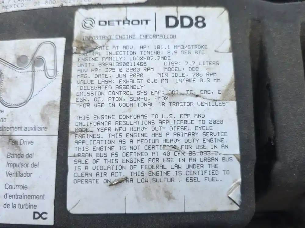 (Core) Engine does Turn 360 Degrees Complete, 2020 Detroit DD8, ENGINE ASSEMBLY- Family Number: LDDXH07.7MDE, Displacement: 7.7L, Horsepower: 375, Serial Number: 936913S0011465, E.S.C.: DDI, TC, CAC, ECM, EGR, OC, PTOX, SCR-U, AMOX, Reference images for condition For more information about this item, give us a call. We ship Worldwide! (CRG HEAVY TRUCK PARTS) 929 W PULASKI HWY ELKTON, MD 21921, Serial#: 936913S0011465, Horse Power: 375, Casting#: 936913S0011465