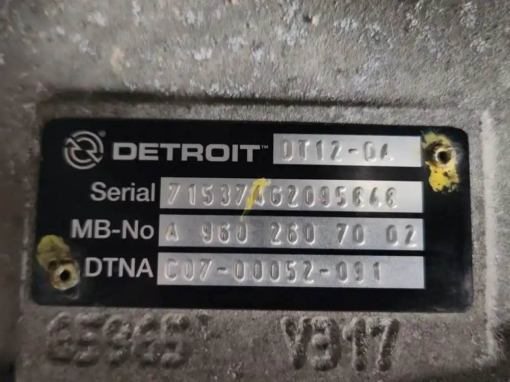 (Used) 2018 Detroit (AT), TRANSMISSION ASSEMBLY- Model: DT12-DA, Serial Number: 715374G2095848, Part Number: C07-00052-091, Engine: Detroit DD15, For more information about this item, give us a call. We ship Worldwide! (CRG HEAVY TRUCK PARTS) 929 W PULASKI HWY ELKTON, MD 21921, Serial#: 715374G2095848, Engine Make: Detroit, Engine Model: DD15, Casting#: 715374G2095848