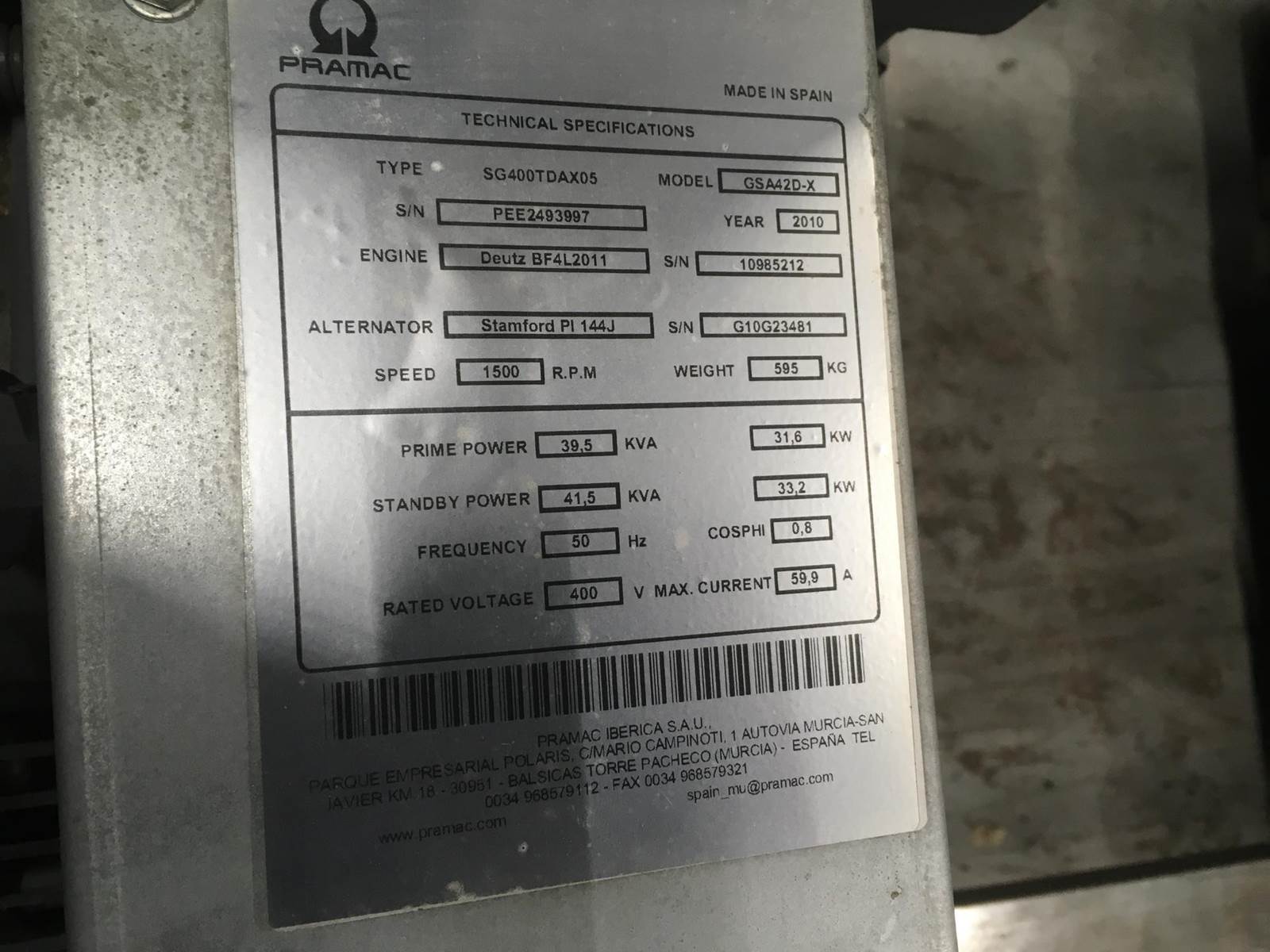Generator Volts: 400