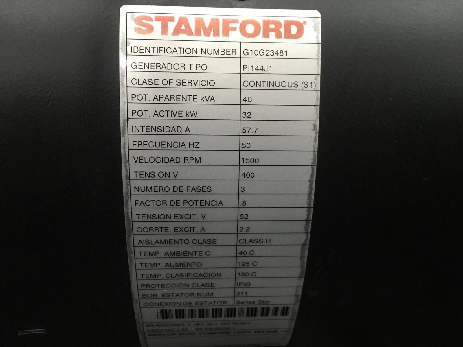 Typenummer: BF4L2011 GENERATOR 40KVA