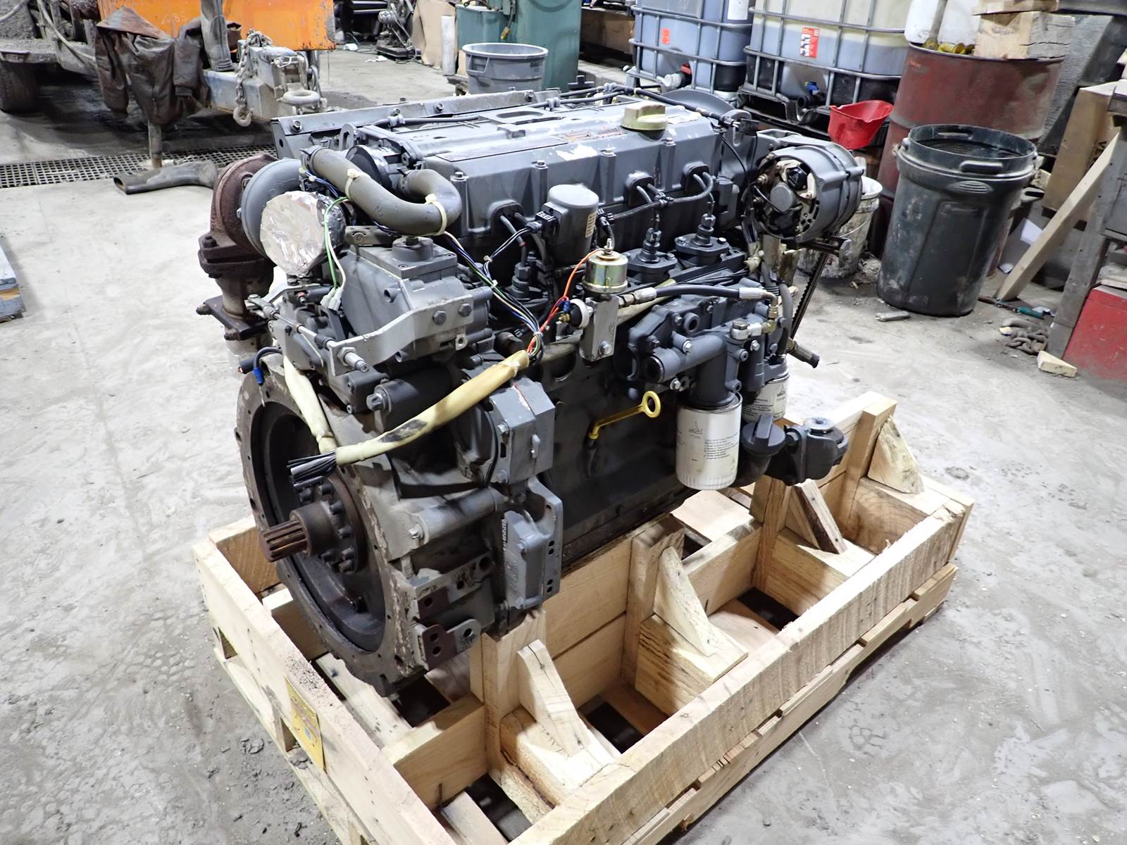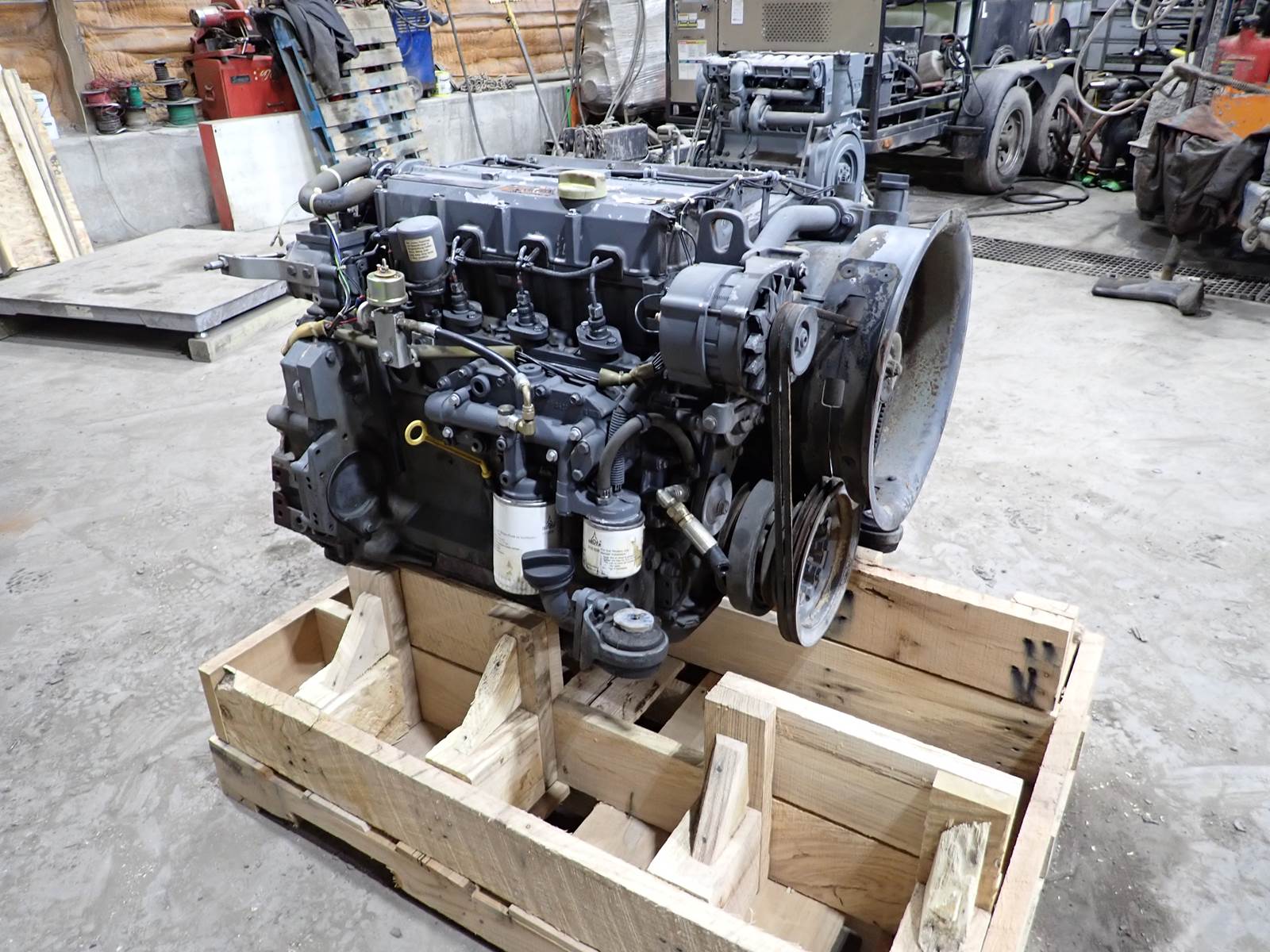 Deutz BF4M1012 diesel engine, turbocharged, mechanical fuel system, side mounted cooling system, water cooled, 87 HP at 2500 RPM rating, strong running engine removed from a slip form paving machine. Shows 85-90 PSI oil pressure on mechanical gauge. GOOD RUNNING ENGINE -- SEE VIDEO. IMPOSSIBLE TO FIND UNIT HERE IN STRONG RUNNING CONDITION -- TEST RAN CLEAN, NO SMOKE OR BLOWBY OBSERVED DURING COLD TEST RUN. ONLY ONE AVAILABLE -- DON'T MISS IT !!