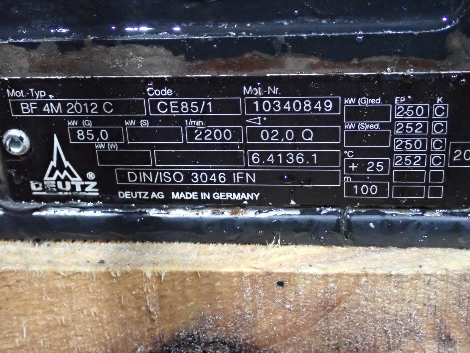 Deutz BF4M2012C diesel engine, turbocharged, intercooled, fully mechanical fuel system, 114 HP at 2200 RPM rating, good running condition. SEE VIDEO -- RUNS CLEAN, NO SMOKE OR BLOWBY OBSERVED DURING COLD TEST RUN -- HARD TO FIND ENGINE -- DON'T MISS IT !!
