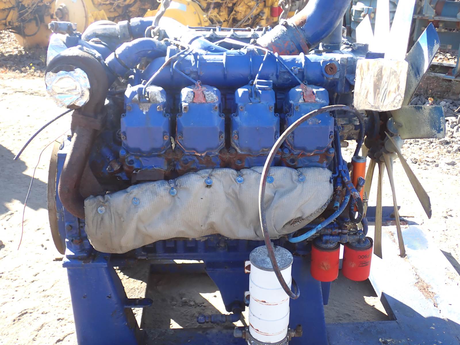 Deutz BF8M1015C diesel engine, turbocharged, air to air aftercooled, mechanical fuel system, V8 configuration, as pictured. NO SERIAL # OR TAG FOUND ON ENGINE -- STARTS AND RUNS W/ GOOD OIL PRESSURE, HAS A SLIGHT MISS, CLEARS UP WITH ETHER, ENGINE IS SOLD AS-IS -- RUNNING TAKEOUT ONLY AS PICTURED.